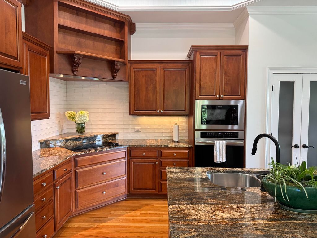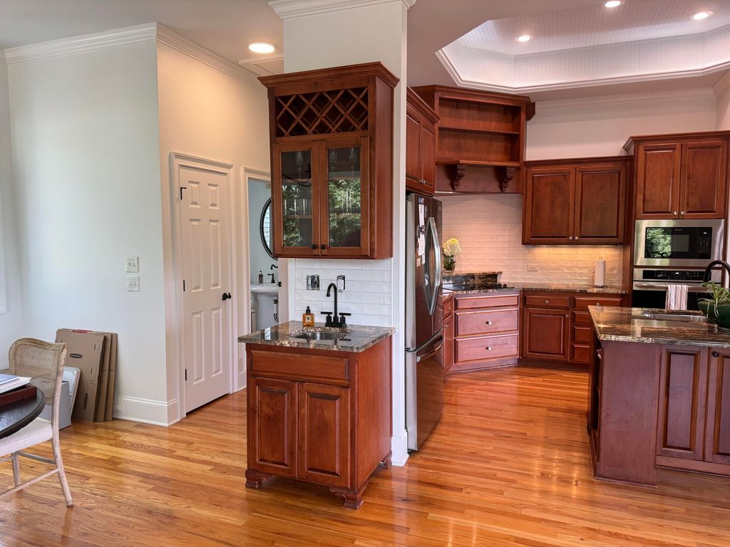 OWNER IS TRANSFERRING - BRING ALL OFFERS! Welcome to this magnificent 3-story home featuring 4 bedrooms and 5 full baths, perfectly designed for all generations with its convenient elevator and expansive wraparound porches. The porches have been completely rebuilt with Ipe wood flooring, which is the clear choice for owners that value quality over imitation products. Located on a generous 1.3-acre lot, this property offers breathtaking golf views, ample natural light, and beautiful hardwood floors throughout, making it a true gem in the Mount Vintage community. The upper-level main living areas are designed to capture the spectacular golf views, with a fabulous open floor plan that seamlessly blends indoor and outdoor living. The family room, complete with built-ins and a cozy fireplace, opens onto the newly redone porches. A heated and cooled section of the porch is an ideal spot to unwind with a good book. The gourmet kitchen is a chef's dream, boasting granite countertops, an island breakfast bar, tray ceiling, pantry, abundant cabinet storage, and a wet bar. A cozy den on the upper level serves as a versatile flex room, perfect as a playroom, office, or a potential 5th bedroom, with access to a full bath. The luxurious master suite features French doors leading to the porch, a custom walk-in closet, and a master bath with his and her vanities, a fabulous shower, and direct access to the laundry room. Spacious spare bedrooms ensure comfort and privacy for family and guests. Additional features of this stunning home include an in-house vacuum system, a Rinnai tankless gas hot water heater, county water and sewer, natural gas, an irrigation system, and beautiful up-lighting. The 2-car garage comes with an oversized storage room, perfect for a workbench or golf cart storage. Fenced-in yard area ideal for containing your 4-legged friends! Living in the Mount Vintage Subdivision means enjoying a plethora of amenities, including golf, tennis, a pool, fitness facilities, and much more. This exceptional home offers a perfect blend of luxury, comfort, and convenience, all set within a vibrant and active community. Don't miss the opportunity to make this dream home your own!