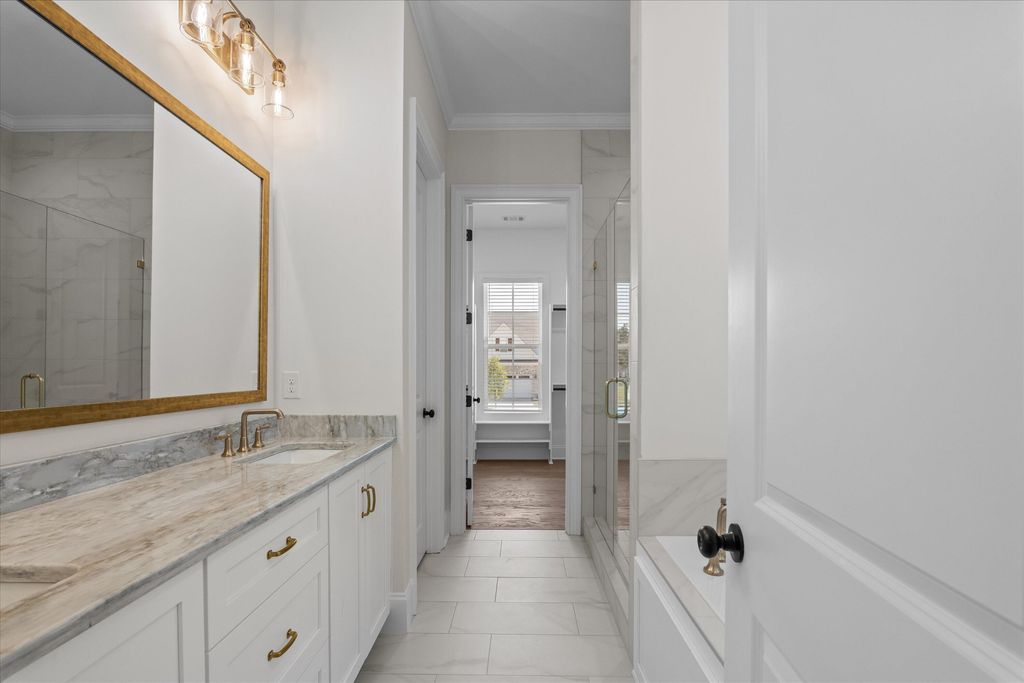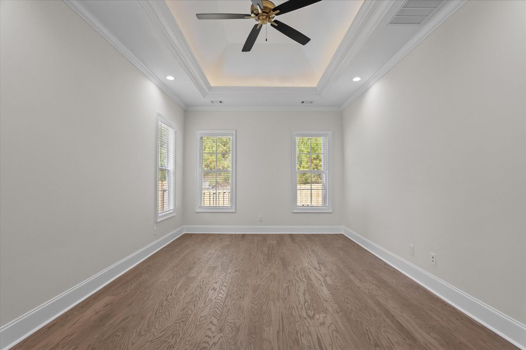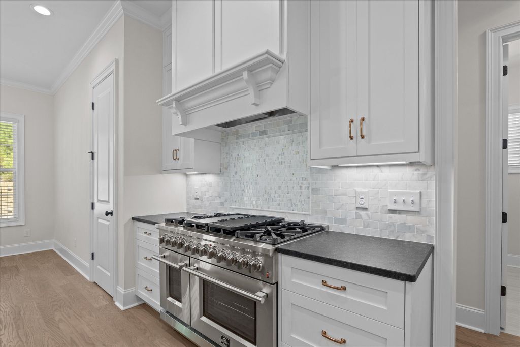 Gorgeous Charlotte Plan built by local custom builder PDH Homebuilders. 5 bedrooms/4 full baths...this home is loaded with extras! Open concept kitchen/family rooms. Chef's dream with beautiful island, 48 inch gas range, granite counters, stainless steel appliances, custom cabinetry and range hood. Site finished hardwood floors flow through the main level including the owner's bedroom. 10ft ceilings/8ft doors throughout the first floor. Owner's suite with tray ceiling located on the first level with 11x10 walk in closet, garden tub, separate tiled shower, his/her sinks. Guest suite downstairs along with large laundry room. Upgraded lighting and heavy trim package. Upstairs you will find three more graciously sized bedrooms with walk in closets, two more full baths...one being a jack n jill style with separate sinks. Spacious Flex room with two closets could be fifth bedroom. Beautiful landscaping front and back with sprinkler system. Estimated completion date early summer 2025.
