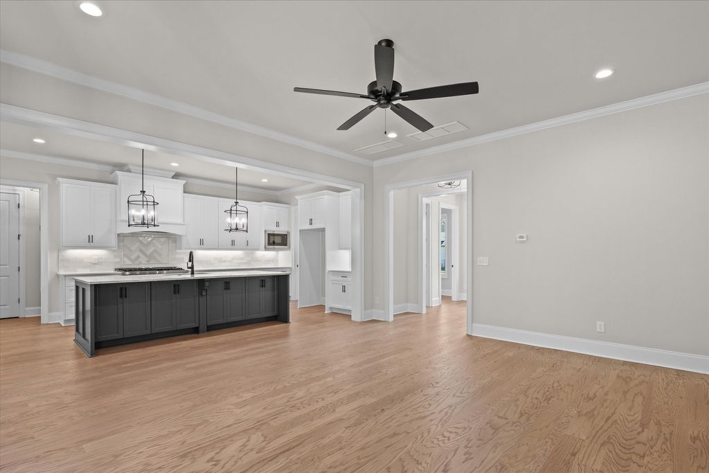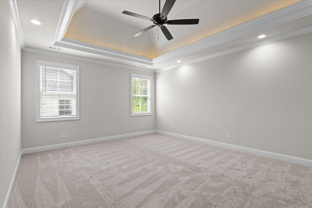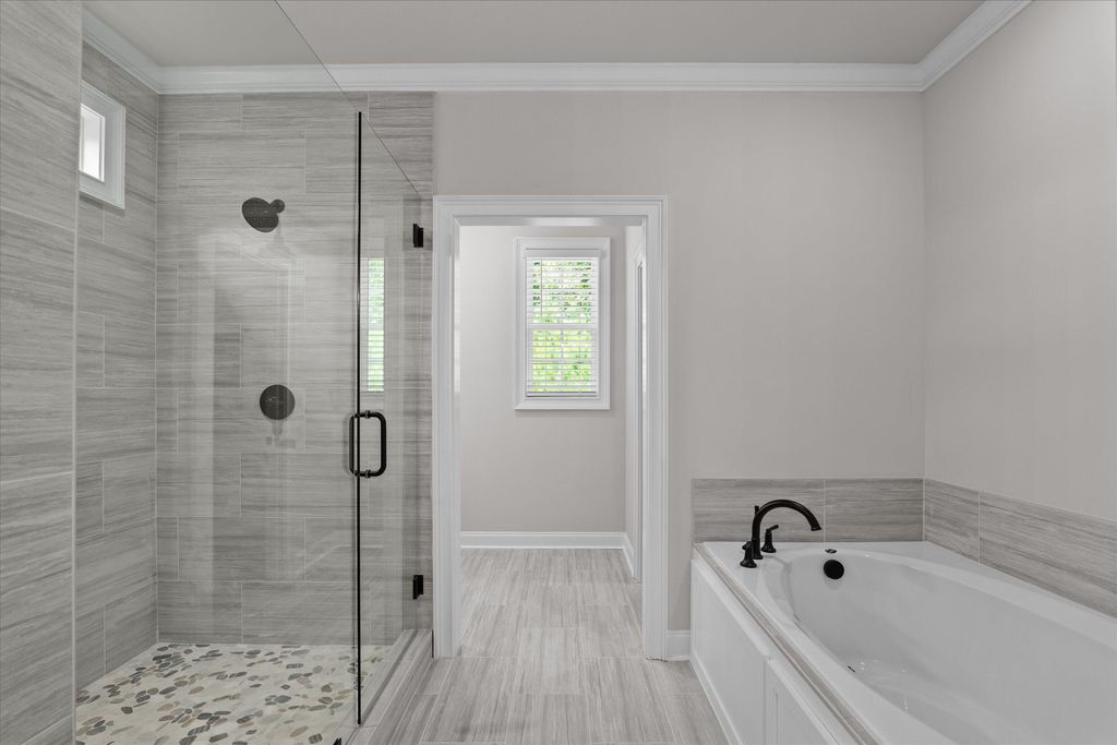 Local favorite, PDH BUILDERS, introduces their newest floor plan to River Oaks! This stunning home is loaded with all their upgraded features: 10 ft ceilings, 8 ft doors, hardwood flooring flows throughout the main living areas and stair treads, tankless gas water heater, heavy trim and molding! You are welcomed through the double wood front doors into a beautiful foyer with a home office to your right. Spacious open floor plan with a lovely great room with gas fireplace, chef's kitchen with huge island overlooking the great room, tons of cabinetry for storage, 48 inch gas range with double ovens, huge 12x 6 pantry. Spacious guest bedroom with en suite on the main level could make a wonderful in law suite! Upstairs you will find the owner's suite with tray ceiling, walk in closet/dressing room, en suite bath with tiled shower, garden tub, and double sinks. Laundry room is upstairs for your convenience! One bedroom upstairs has an en suite bath and the other two bedrooms share a jack in jill style bath. Fully landscaped, irrigated, and sodded front and back lawns. Enjoy your time outdoors on the covered back porch. Move into this beauty this summer! Award winning school zone! Convenient to recreation parks, Betty's Branch, and the lake!