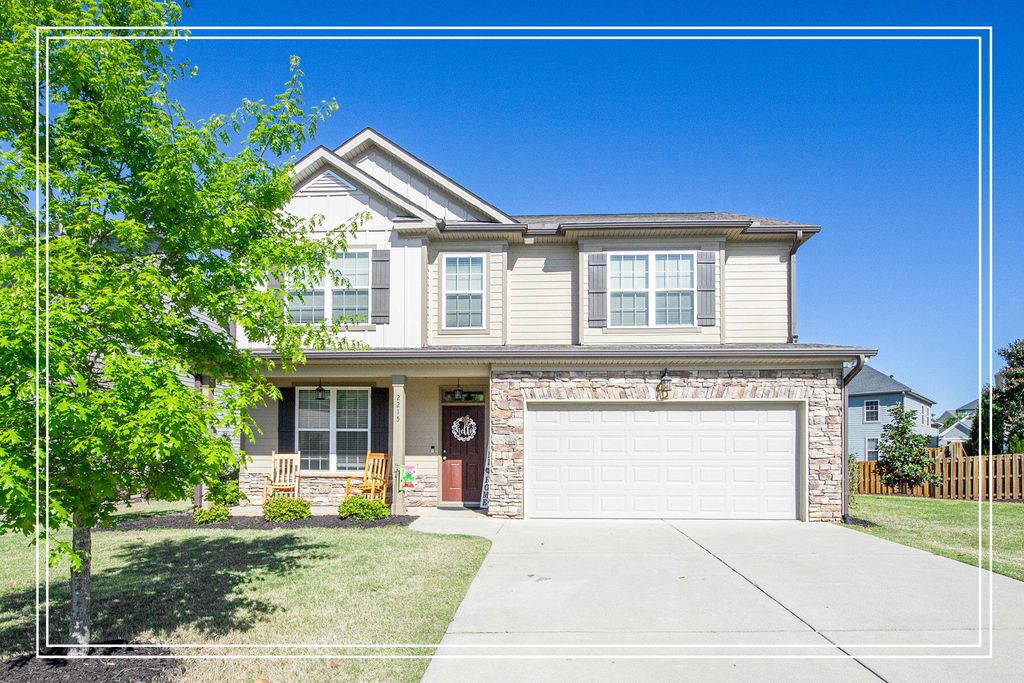 **Beautiful 4 Bedroom Home in Sought-After Crawford Creek!** This stunning 4-bedroom, 2.5-bathroom residence boasts a charming rocking chair front porch, inviting you into a warm foyer adorned with crown molding and elegant wood flooring that flows throughout the main living areas! The heart of the home is a spacious kitchen featuring an island with bar seating, granite countertops, and two pantries for ample storage! You'll love the beautiful backsplash, appliances include a 5-burner gas range, built-in microwave, and dishwasher! The adjoining breakfast room is illuminated by a lovely light fixture, creating the perfect spot for casual meals! Relax in the cozy living room equipped with a ceiling fan, or enjoy formal dining in the dining room with a coffered ceiling and stylish lighting, would also make a great office space! Retreat to the owners suite, showcasing crown molding, a tray ceiling, a ceiling fan, and a generous walk-in closet! The en-suite bathroom features a double sink granite vanity, a tiled shower, a soaking tub with tile surround, tiled flooring, and a convenient water closet! Three additional spacious bedrooms share a full bathroom with a double sink granite vanity and tiled flooring! Half bath for visitors! The laundry room includes tiled flooring for easy maintenance! Step outside to unwind under the covered back porch, where an extended patio provides an ideal space for a firepit area, all overlooking a spacious privacy-fenced backyard! Situated on a corner lot, this home offers both privacy and space for outdoor activities! Located in the beautiful Crawford Creek community, you'll enjoy fantastic amenities including a resort-style community pool, lap pool, clubhouse, covered pavilion, playground, and walking trails! With an easy commute to Fort Eisenhower, as well as nearby schools, shopping, and dining options, this gem is waiting for you!