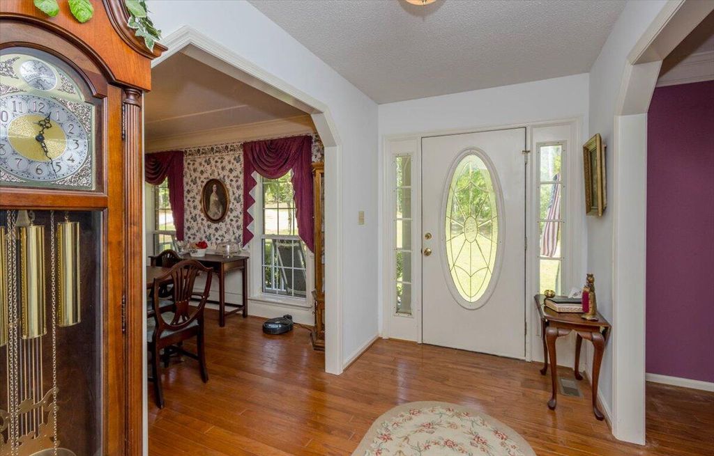 Welcome to your beautiful oasis! Enjoy privacy and convenience with this beautiful traditional home featuring 5 bedrooms, 3 baths, and a pond on 5.5 acres. A long private driveway leads to your own oasis, just minutes from schools and shopping. Inside offers formal living and dining rooms, a great room with fireplace, and a galley kitchen with a breakfast nook overlooking the property. The main-level owner's suite includes a garden tub, tiled walk-in shower, and walk-in closet. Two additional guest rooms are also on the main floor. Upstairs you'll find two more bedrooms and an additional room. Relax on the rocking chair front porch, the screened-in porch, or the grilling porch. County water, a well for irrigation, and septic system in place. Walking distance to Parkway Elementary!