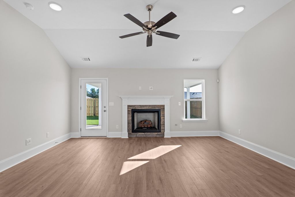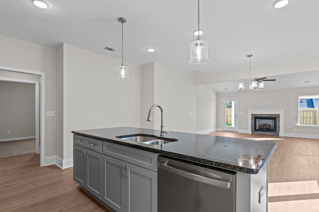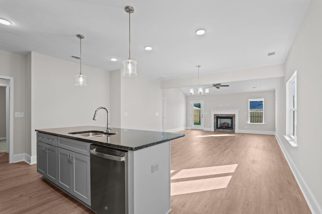 Welcome to Clearwater Preserve! The Thornhill 5 Easy Living plan by Bill Beazley Homes offers the perfect blend of style and functionality. This ranch-style home features 4 bedrooms and 2 full bathrooms, designed with comfort in mind. The beautiful kitchen boasts a large island, granite countertops, a tile backsplash, and GE stainless appliances, including a smooth-top range, built-in microwave hood, dishwasher, and garbage disposal. Recessed lighting adds a modern touch, while the open-concept dining and great room feature vaulted ceilings, and a 36'' ventless gas fireplace for cozy evenings. The primary suite offers a spacious walk-in closet, ceiling fan, and bathroom retreat with double vanity, garden tub, and walk-in shower. All bathrooms include quartz countertops, LVT flooring, and framed mirrors, while Evacore waterproof click flooring runs throughout the main living areas. Additional features include 2-inch faux wood blinds on front windows, a covered back porch with an open patio, 6' privacy fence, programmable sprinkler system, tankless gas water heater, and a Qolsys Smart Home Security system. A programmable smart thermostat, home warranty, and full-time warranty staff add peace of mind. Enjoy the exceptional community amenities, including sidewalks throughout, underground utilities, streetlights, a large pavilion, pickleball courts, and a planned resort-style pool. The builder is offering a 7000 incentive that can be used towards closing costs, upgrades, or to buy down the interest rate. Experience a 360-degree tour of a previously built home with this floor plan. 625-CP-7009-01