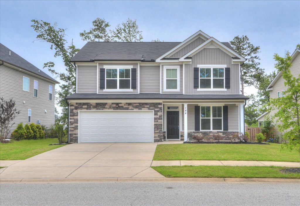 ASSUMABLE VA loan with a 5.25% rate! With today's rates, you could easily save hundreds in your monthly payment by doing the assumption. Lovely Bradford II plan by Ivey Homes, built new in 2023, featuring a light and bright open floor plan running from the kitchen to the family room, 38 continuous feet! Plenty of granite counter space in the kitchen, pantry, breakfast bar, hardwood floors throughout main level, formal dining room or flex room, ½ bath downstairs and lots of storage room! All bedrooms are upstairs, owner's suite is oversized with a large walk-in closet, dual vanities in the en-suite as well as soaking tub and separate shower. The other 3 bedrooms are well appointed with large closets, two of them are walk-ins. Shared bath features dual vanity, granite counters and private bath/shower/toilet separated by a door. Privacy fenced back yard and covered patio area making outside time relaxing and easy if you enjoy watching nature. Neighborhood amenities include streetlights, sidewalks, playground and a pool with a cabana! This home is centrally located to shops, I-20, hospitals, restaurants and the military base.