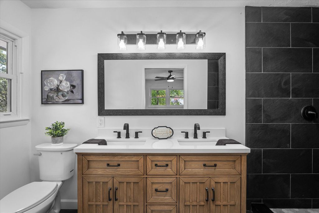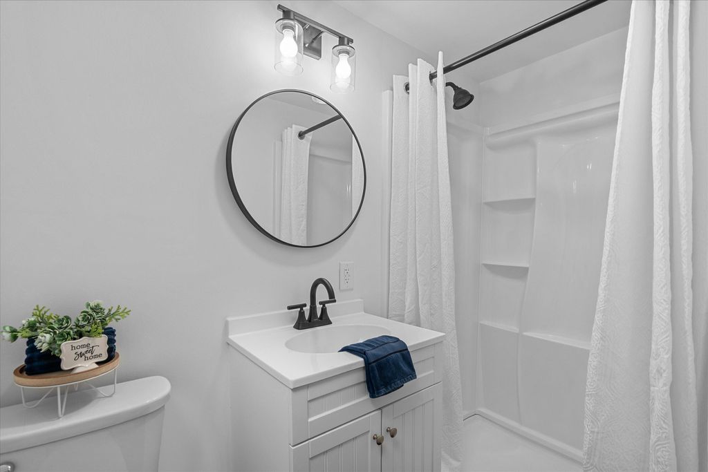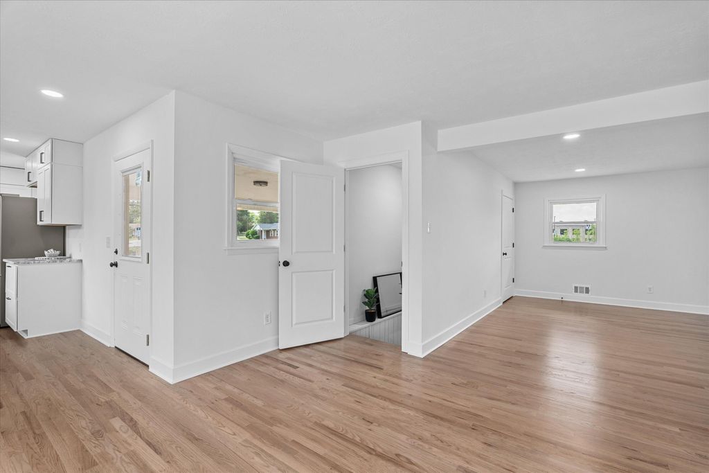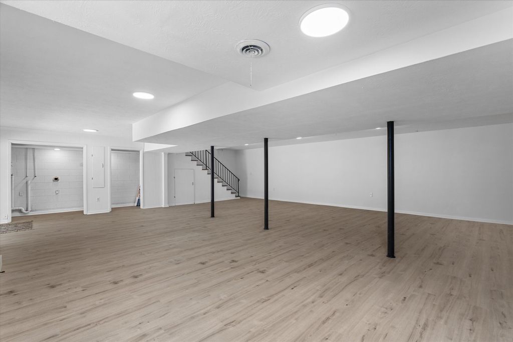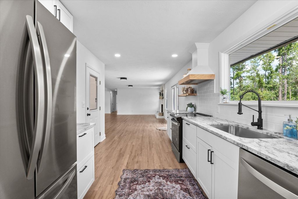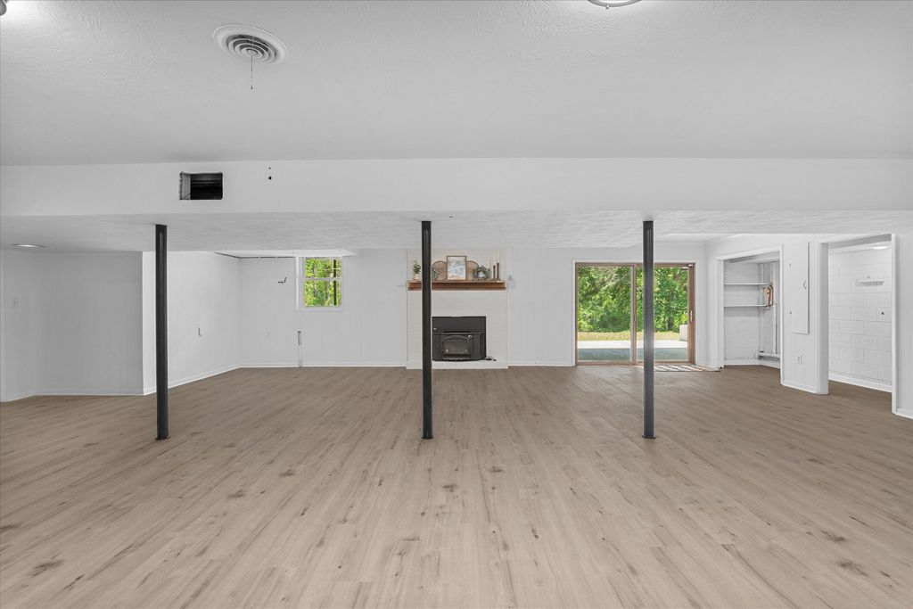 Welcome home! From the moment you step onto this beautiful 1.8-acre lakefront property, you'll fall in love with every detail. The backyard is a serene getaway, with a private pond fully stocked for fishing, geese waddling through with their babies, and a breeze that always seems to be blowing through the mature trees. A grand living space greets you as you walk through the front door, with gorgeous light hardwood floors throughout and a gas fireplace for cozy nights. Whether you have a big family or just love to host, the main living space has ample room for gathering around a large dining table and creating the living room of your dreams! The heart of this home is certainly the kitchen. The large wooden range hood and matching stained wood floating shelves give warmth and character to the space, while the large pantry wall provides plenty of storage. But the centerpiece of the kitchen is the grand oversized picture window over the sink that shows off the incredible view of the backyard. Natural light pours into the home from every angle and highlights the nature that surrounds it on all sides. Downstairs is another grand space of its own! With brand new flooring and a completely remodeled bathroom, the options are endless. The two bedrooms and huge common area can be utilized as a place for guests, a playroom for kids, an awesome game room for teenagers (or adults!), or even a second living room. The large glass sliding door opens up to the backyard patio so you can enjoy even more of the beautiful outdoors! Recent upgrades are everywhere you turn in this lovely home and include: a new roof and gutters, a basement waterproofing system with transferable warranty, brand new appliances, leathered granite countertops, and completely remodeled bathrooms. Snag this beauty before it's gone!