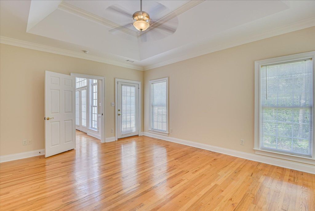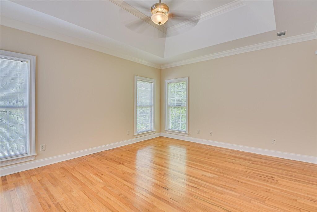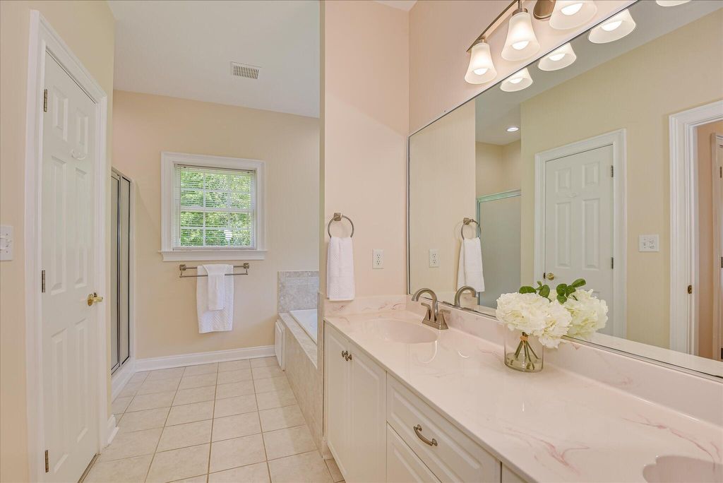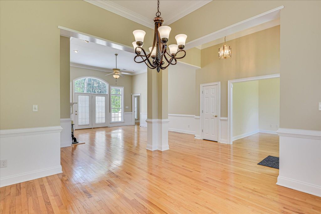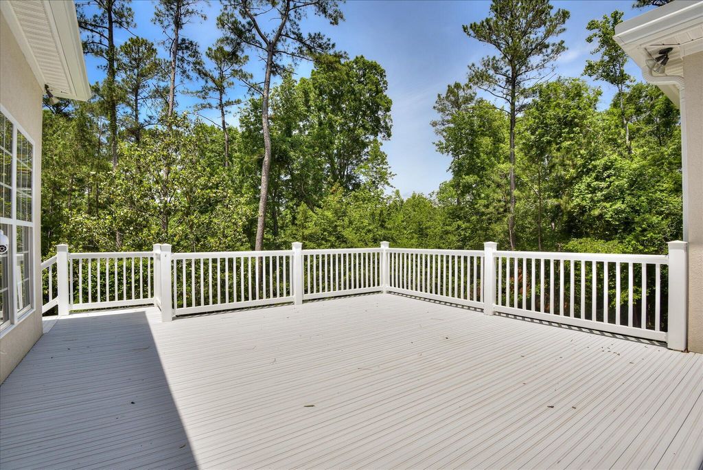 Welcome home to 327 Peter Carnes Drive! Located in picturesque and highly sought-after Mount Vintage Plantation, this lovely 4-bedroom, 3-bathroom home offers an excellent opportunity to live in a vibrant, amenity filled golf course community while enjoying the privacy of 2.9 tranquil wooded and landscaped acres situated at the end of a peaceful cul-de-sac. The open and inviting floor plan features soaring ceilings and hardwood floors that flow throughout all main living areas. Filled with natural light, there is a large formal dining room and office just off the foyer. The great room is the perfect spot for entertaining friends and family and features a cozy gas fireplace and direct access to the expansive composite deck. The eat-in kitchen with central island, lots of counter space, stainless appliances, custom tile backsplash, and Corian counters truly is the heart of the home and overlooks an enclosed sunroom providing spectacular views of your private backyard oasis. There is also a screened in porch off the sunroom that would be the perfect spot for starting the day with a cup of coffee and enjoying the fragrance from the gardenias when they are in full bloom. The split floor plan allows for maximum privacy! A large primary bedroom on the main level offers a serene retreat with hardwood floors, tray ceiling, dual oversized closets, and an ensuite bath featuring a soaker tub with tile surround. There is also a separate shower and double vanity to complete the space. Two other spacious bedrooms and a full bath with double vanity balance out the other side of this level perfectly. The home was designed to include plenty of storage space and the laundry room has additional built-in cabinetry and a utility sink. Upstairs is a large 4th bedroom with ensuite bathroom providing an ideal sanctuary for guests. Move-in ready, the majority of the interior was professionally painted recently to include ceilings, walls, and trim. Oversized driveway and a 3-car side-load garage provide plenty of space for parking. Updates include a new roof, gutters, and downspouts in October '23. Crawlspace was partially encapsulated in April '24. Seller to provide one year home warranty. Mount Vintage Plantation surrounds an award winning 27-hole golf course and offers exceptional amenities for your enjoyment. Including a fitness center, Junior Olympic-sized pool, Har-Tru clay tennis courts, community garden, and lending library. Schedule your appointment today!