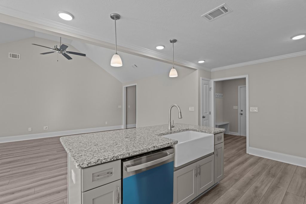 The Baldwin 5, is a stunning, all one level, representation of traditional comfort built by Bill Beazley Homes. Your options are plentiful to make the personal touches in your new home. Boasting an open floor plan, this 3-bedroom, 2-bathroom ranch home offers the perfect blend of luxury and functionality. The spacious great room greets you from the foyer. While the kitchen overlooks the space, and is truly the heart of the home. Featuring granite countertops, a tile backsplash, recessed lighting, a power pantry, center island, and stainless steel appliances, cooking will be a breeze. The primary bedroom retreat is a haven of relaxation, complete with a large walk-in closet and a luxurious bathroom featuring double vanities, a garden tub, and a walk-in shower. All bathrooms offer quartz countertops, LVT flooring, and framed mirrors. Evacore waterproof click flooring adds durability and style to the living areas of the home, and premium carpeting is in the bedrooms. This plan is thoughtfully designed with an abundance of storage throughout and spacious rooms. Enjoy the convenience of 2-inch faux wood blinds on the front windows, a covered back porch, and an open patio, perfect for outdoor entertaining complete with privacy fence for added relaxation. The programmable sprinkler system makes for a vibrant lawn, while the tankless gas water heater ensures a constant supply of hot water. For added security and convenience, the home is equipped with an Interlogix Smart Home/Security System, structured wiring using CAT6 and RG6 wiring, and a programmable Smart thermostat. WCFIBER offers the fastest internet service. There are walking trails, an activity field, and saltwater community pool with pavilion for your enjoyment! Plus, this home's location is incredibly convenient, with easy access to Fort Gordon, Medical Districts, Aiken and Augusta, and I-20. Experience a 360-degree tour of a previously built home with this floor plan. Builder is offering a 8,000 dollar incentive that can be used to cover your closing costs, lower your mortgage rate, or purchase upgrades such as appliances or even a screened porch! Home is move in ready now! 625-KR-7009-01