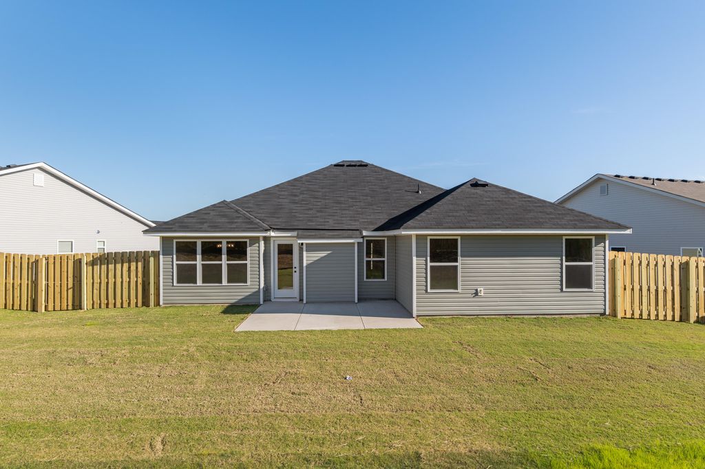 Introducing the Baldwin 4 by Bill Beazley Homes"”a beautifully constructed ranch-style home offering 3 bedrooms, 2 full baths, and a spacious double-car garage. Thoughtfully designed and full of upgrades, this home is perfect for modern living. Step into a bright and inviting foyer featuring click wood flooring, which flows seamlessly into an expansive great room complete with a vaulted ceiling, ceiling fan, and a cozy electric fireplace"”perfect for entertaining or relaxing nights in. The open-concept kitchen is a chef's dream, showcasing painted cabinetry, gleaming granite countertops, stainless steel appliances, and ample counter space for meal prep and gatherings. Retreat to the oversized Owner's Suite, which boasts a ceiling fan, generous walk-in closet, and a luxurious en-suite bath featuring a dual vanity, garden tub, separate walk-in shower, and a private water closet. The two additional bedrooms offer equal space and comfort, ideal for family, guests, or a home office. Effortless Curb Appeal - An automatic sprinkler system ensures your yard stays lush and green with ease and privacy fence. Smart & Secure - Includes Interlogix Smart Home Security and 2'' faux wood blinds on front-facing windows for added privacy and convenience. Prime Location! Easy access to Fort Gordon gate 5, Starbucks, SRS, Bridgestone, Plant Vogtle, I-520, and a variety of shops, restaurants, parks, and recreation. Minutes away from Diamond Lake Regional Park, tennis courts, walking trails, a library, indoor gym, and fishing spots! 50-dollar annual membership for inside activities offering both convenience and tranquility. The builder is offering a 7,000 incentive to use toward closing costs, upgrades, or buying down your interest rate! Experience a 360-degree tour of a previously built home with this floor plan. 625-SH-7009-01