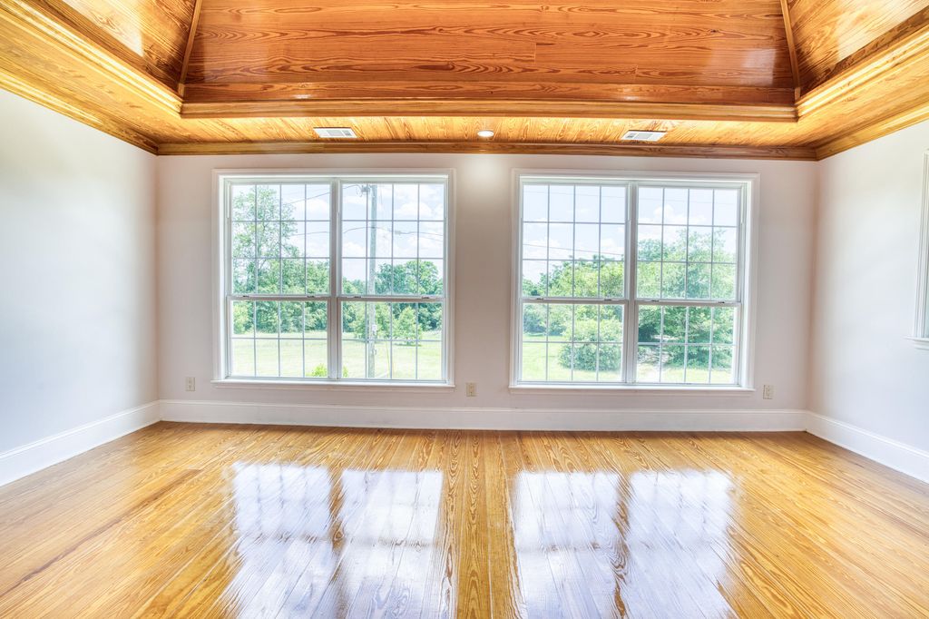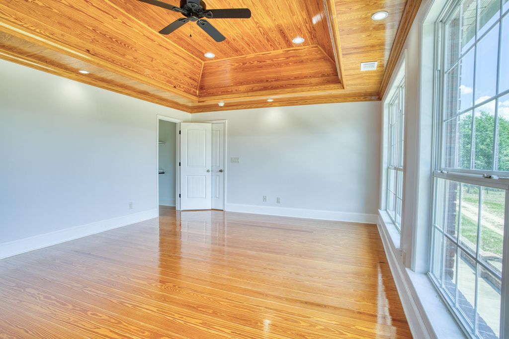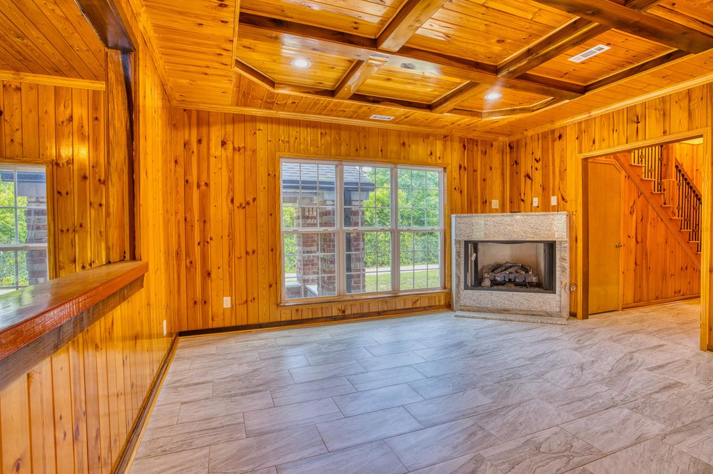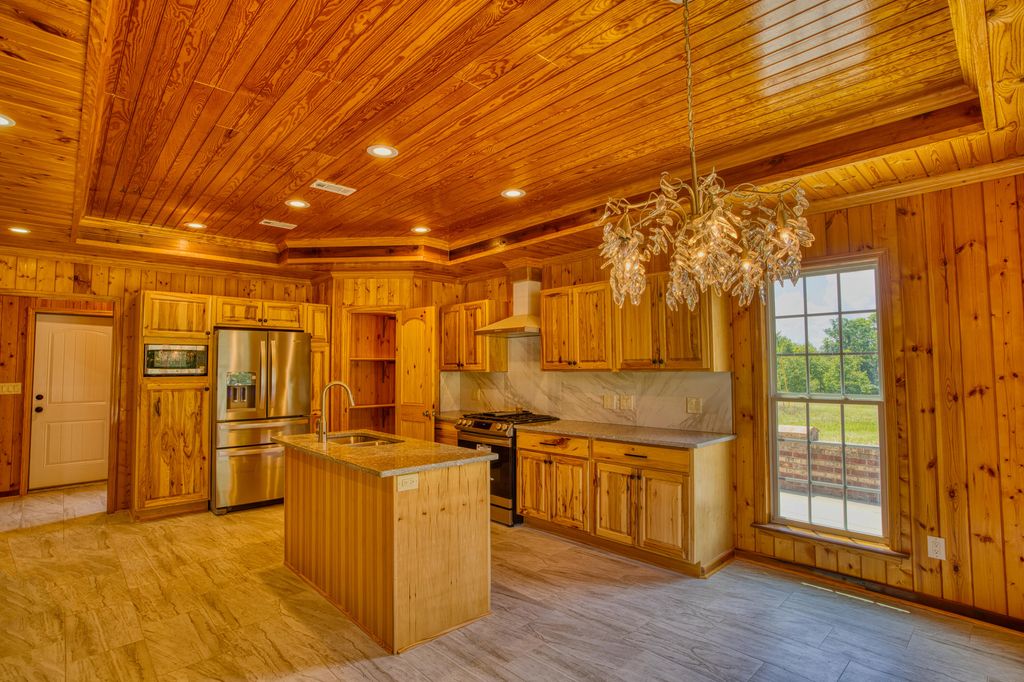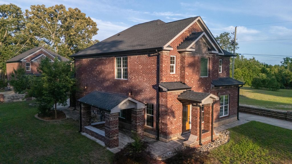 No detail overlooked in this exquisitely crafted, all-brick home nestled on nearly half an acre lot. Featuring 4 bedrooms and 2.5 baths, this residence blends rustic charm with modern elegance. Warm pine and poplar woodwork grace the walls, ceilings, and trim, creating a rich, inviting atmosphere throughout the open-concept living areas with ceramic tile flooring. The kitchen is a chef's delight"”offering granite countertops, ample cabinetry, a center island, pantry, stainless steel appliances (including refrigerator), and a sunny breakfast area. Overlooking both the kitchen and keeping room, the spacious living room is highlighted by a coffered ceiling, granite-accented corner fireplace, and oversized windows that flood the space with natural light. Upstairs, beautifully finished hardwood floors run throughout all bedrooms. The expansive primary suite showcases an elegant trey ceiling, while the ensuite bath features a granite-topped, double vanity, striking garden tub with floor-to-ceiling tile surround and separate tiled shower. Additional highlights include extensive parking space surrounding the home, and full guttering encircling the entire exterior for added functionality and curb appeal. Double garage, GE Washer and Dryer remain.