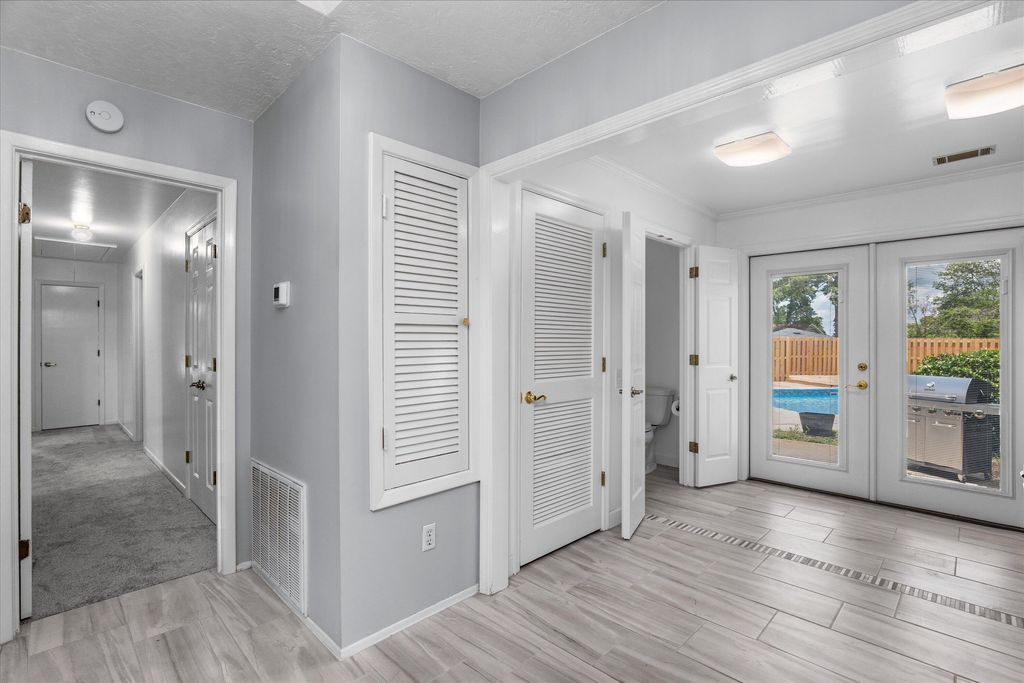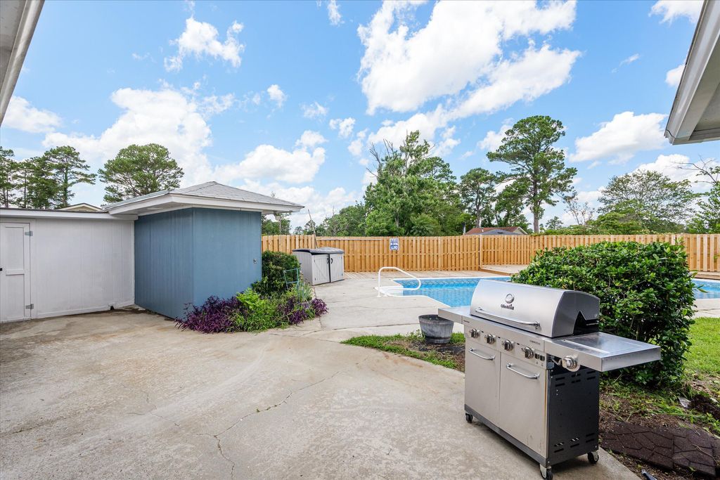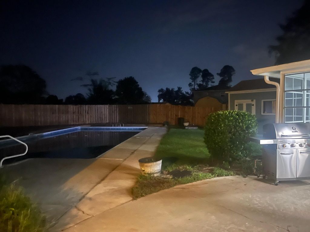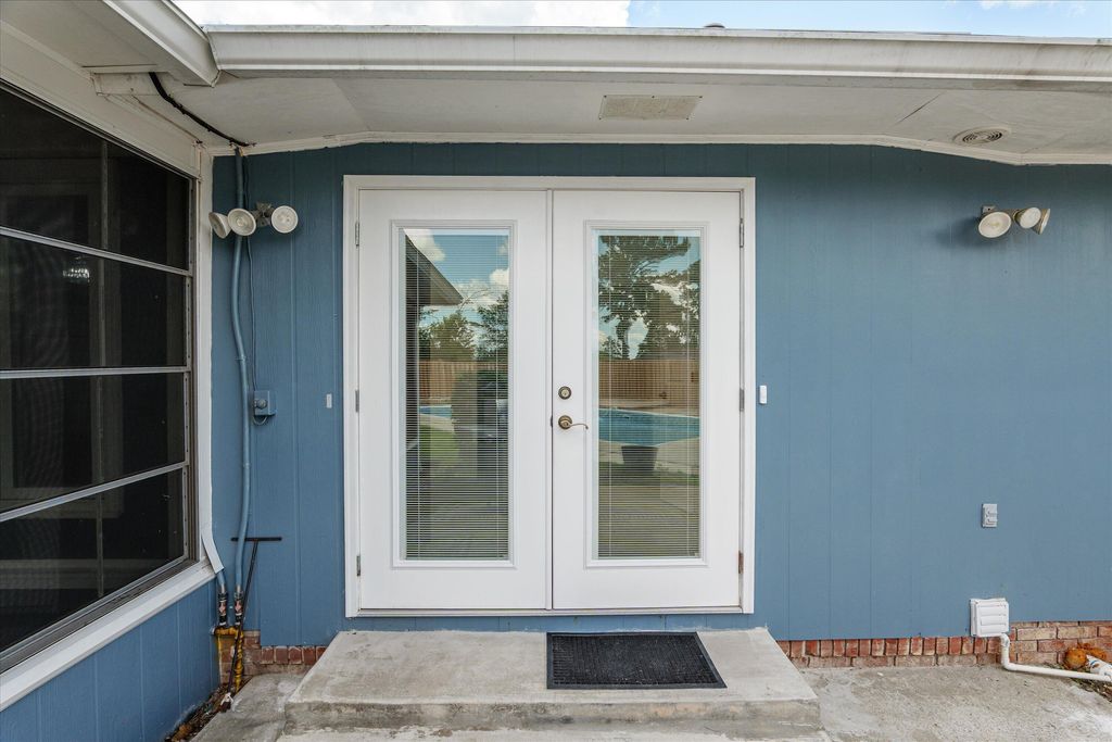 Huge Price improvement. Confirmed sq footage of the house and heated/cooled Patio room measurements. New listing amount is under appraised value. Beautiful and Spacious! This well-kept ranch home is minutes from everything! You enter this well-maintained home, to a 6-foot-wide central access hallway that separates the leftwing from the rightwing. The porcelain tiles pave the way directly to French doors, that open to the backyard and a 20 x 40 AQUATIC SALTWATER POOL! Before exploring those areas, let us take a moment to appreciate the foyer. On the left, you'll find 4 STORAGE AREAS and a half bathroom, while the right side features a full-size 4 x 2.5 SHELVED PANTRY and another open storage space (formerly used for a freezer). These practical improvements were made when the porch was merged and enclosed in 2015. The owner's suite bathroom was upgraded to include handicap accessibility. The spacious kitchen offers excellent storage and will include appliances. Kitchen and dining room floors are porcelain. Adjacent to the kitchen is the den, with an OVERSIZED SEE THROUGH FIREPLACE from the sunken living room. The backyard features a 20 x 40 AQUATIC SALTWATER POOL, a 10x10 shed, there are two additional storage rooms, all enclosed by new privacy fencing with an outer perimeter fence as well. This home is a must-see to fully appreciate the thoughtful quality improvements made for long-lasting comfort!
