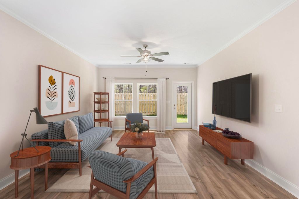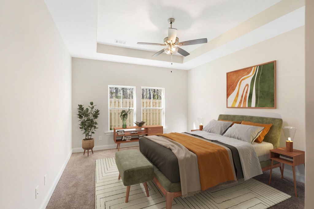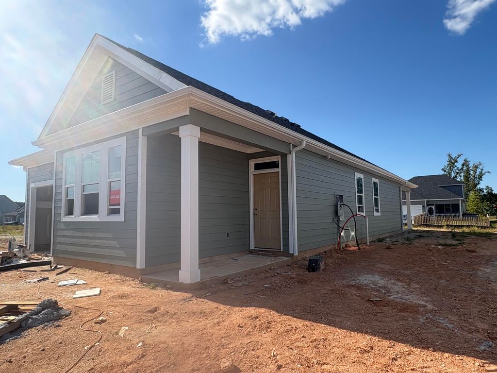 The 1313 plan is a newer plan from Ivey Homes, perfect for first-time homebuyers or those looking to downsize from a larger home. Upon entering this ranch-style plan, you are greeted to the right with the secondary bedroom and a full bathroom. Walking through the foyer, the home flows into an open-concept kitchen, cafe, and family room. Directly off of the kitchen you will find an entrance to the one-car garage and a full laundry room. Rounding out this charming two-bedroom home is the owner's suite and owner's bathroom with large walk-in-closet.