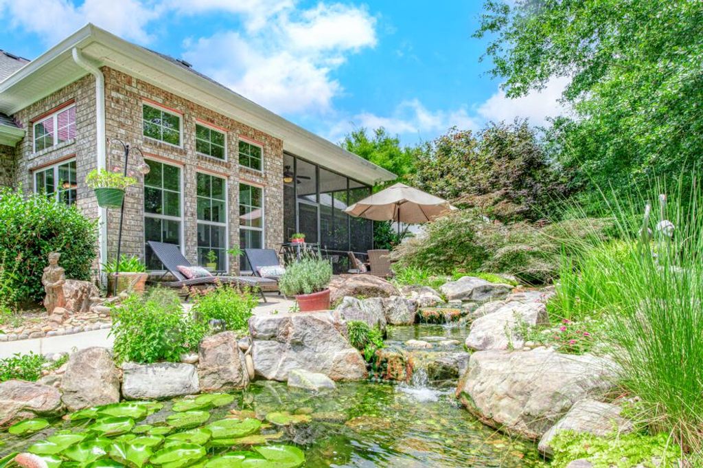 Discover a home where extraordinary love and meticulous attention to detail have transformed the outdoor space into a breathtaking oasis! This beautiful all-one-level home boasts 4 spacious bedrooms and 2.5 bathrooms, perfectly complemented by a spectacular backyard designed for relaxing! From the moment you arrive, you'll fall in love! The backyard is a true labor of love featuring a 4-tiered waterfall, a vibrant pollinator garden and two expansive shade gardens! Nine elegant Japanese maple trees create a serene canopy, while the pond with four graceful koi fish adds a peaceful touch to this lush landscape! Boulders and rocks that artfully frame garden beds, and blooms flourish in every season, ensuring beauty and tranquility all year long! Inside, the home exudes warmth and sophistication! The inviting foyer with hardwood floors welcomes you into a spacious living area with vaulted ceilings, a cozy gas fireplace, and built-in shelves, perfect for relaxing evenings or entertaining guests! The kitchen boasts granite countertops, a stylish tiled backsplash, a spacious pantry, breakfast bar, and a bright breakfast room with windows that fill the space with natural light! The owner's suite offers a private retreat, complete with a cozy sitting area ideal for reading or unwinding! The luxurious ensuite features a large walk-in tiled shower, a soaking tub, double sink vanity, walk-in closet, and a water closet! Three additional spacious bedrooms with ceiling fans share a full bathroom, providing comfort and privacy for family and guests! Additional features include a laundry room with a closet and mudbench, and a side entry leading to the 2-car garage! Step outside to enjoy the screened porch with a soaring ceiling, a stone patio and a pergola for relaxing, all perfect for basking in the stunning backyard views or hosting memorable gatherings! This exceptional home also offers a potting bench and shed for your gardening needs, along with a putting green for leisure and fun! The beautifully landscaped yard creates a peaceful retreat where something blooms and thrives throughout the year! Nestled in The Retreat at Storm Branch with a resort style neighborhood pool, tennis courts, and pickleball courts, this home offers the perfect blend of outdoor beauty, luxurious living, and community amenities! Experience the love, care, and attention poured into every inch of this extraordinary property!
