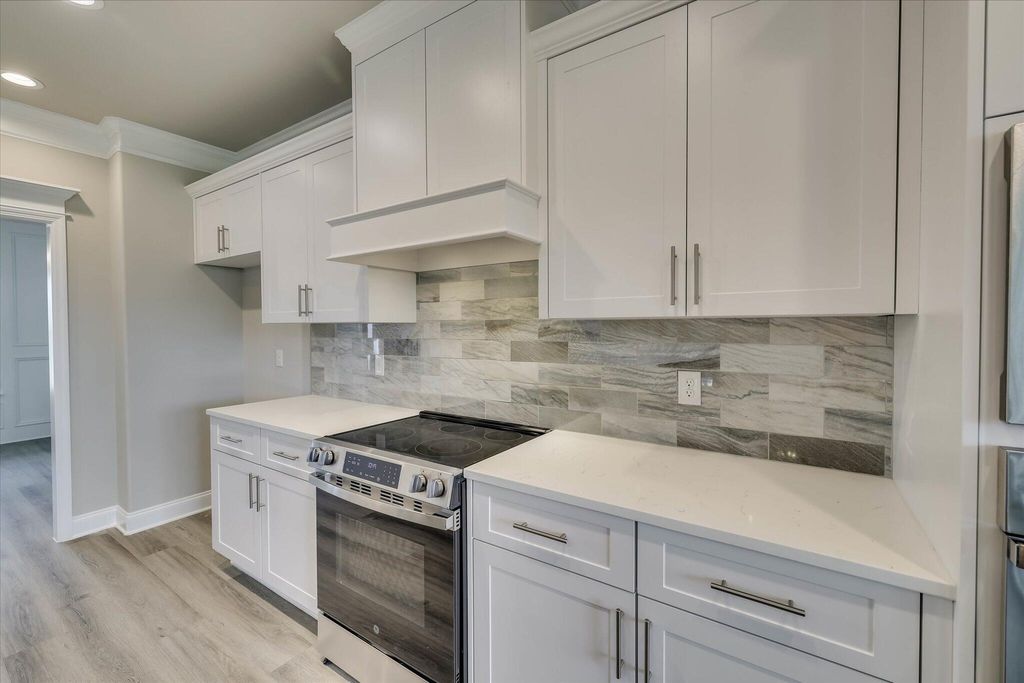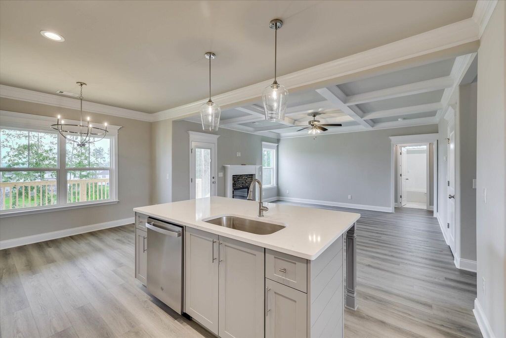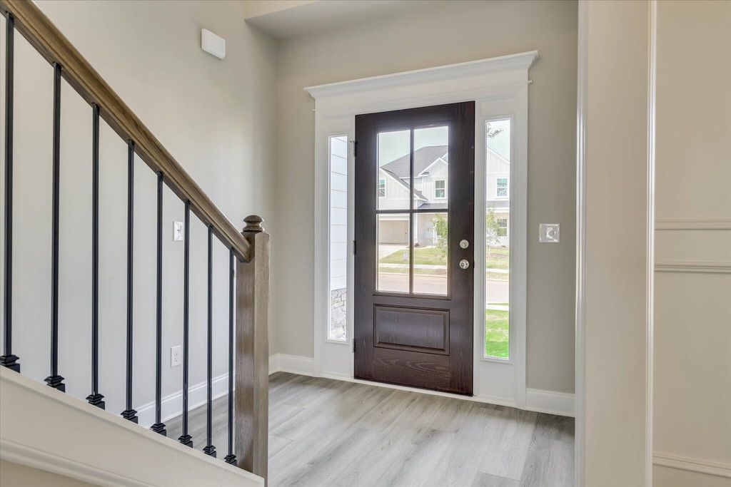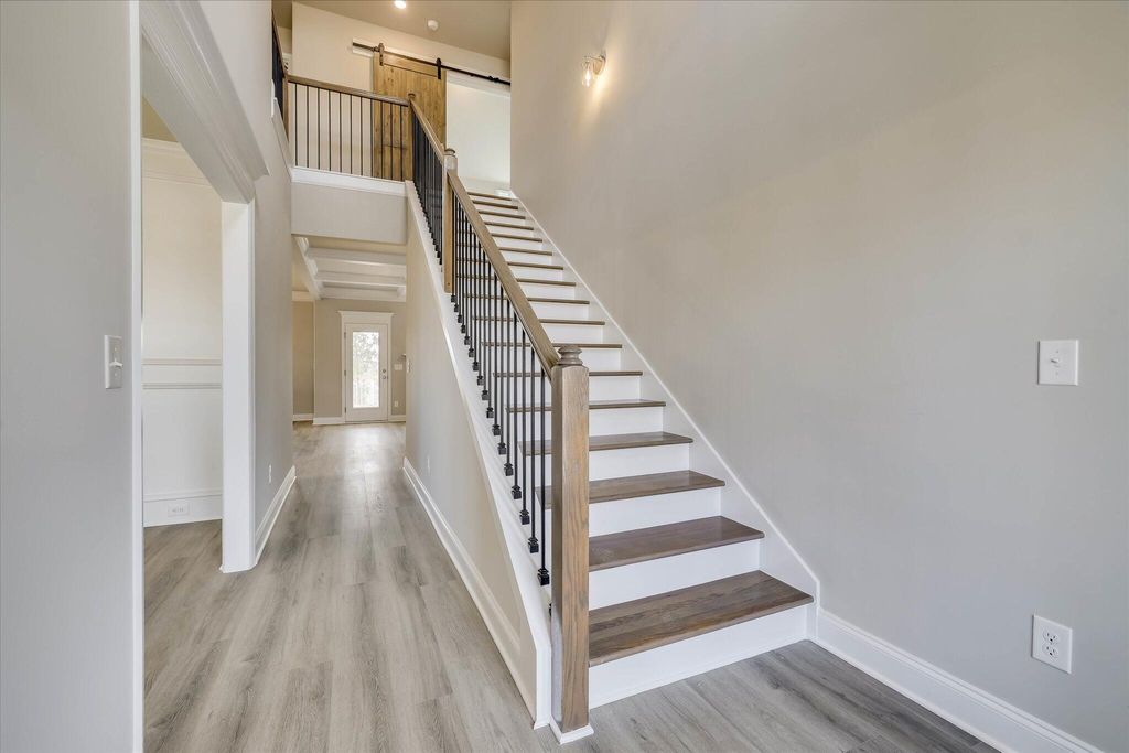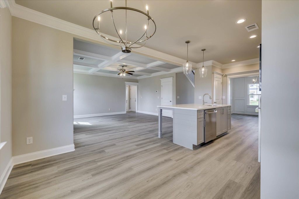 The Lansing 8 Basement Plan by Oconee Capital - 6 Bed | 4 Bath | 3,503 Sq Ft Introducing The Lansing 8 Basement Plan, a stunning 3-story home with 6 bedrooms, 4 baths, and 3,503 sq ft of thoughtfully designed living space. This home is perfect for families who want style, function, and room to grow. Step into the foyer and be greeted by a formal dining room featuring coffered ceilings and elegant picture-frame molding, ideal for hosting dinners and holiday gatherings. The open-concept family room and gourmet kitchen create the heart of the home, combining comfort, flow, and luxury. The main kitchen is a chef's dream, complete with: Slide-in range, single oven, microwave above, and upgraded dishwasher Wood hood vented to the exterior for that classic modern look White cabinetry with sleek gray island and matching backsplash, providing style and storage A main-level in-law suite with full bath offers privacy and convenience for guests or extended family. Upstairs, a media room provides the perfect entertainment space, while additional bedrooms give everyone room to spread out. The basement is an entertainer's dream, featuring a kitchenette and theater room, ideal for movie nights, game days, or hosting friends. Step outside to a fully landscaped and irrigated yard, perfect for gatherings, play, or relaxing evenings. With coffered ceilings, high-end finishes, and a versatile layout, The Lansing 8 Basement Plan delivers style, comfort, and the perfect home for modern living. ***Home includes a privacy fence. ** OPTIONS IN THE HOME CAN CHANGE PRIOR TO AN AGREED UPON CONTRACT AT THE BUILDERS DISCRETION. WP INCLUDES 3.5 ACRE PARK ,WALKING TRAILS, SIDEWALKS, PARKS, STREET TREES, STREET LIGHTS, PLAYGROUND, FIRE PIT & POOL.