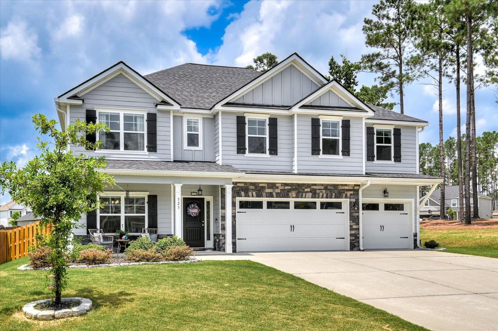 SELLER INCENTIVE available with an acceptable offer and use of preferred lender. Beautiful 5 Bedroom, 4 Bath Home with 3 Car Garage in Desirable Canterbury Farms! Move right in! No builder delays, no extra costs, just a home that's better than new. This stunning home features a rocking-chair front porch and an inviting foyer leading to a formal dining room. The open-concept layout boasts a spacious great room with fireplace, seamlessly connected to the kitchen with plenty of counter space, a large island, double ovens, stainless steel appliances, and tile backsplash. LVP flooring flows through the foyer, dining room, kitchen, breakfast area, and great room for both beauty and easy maintenance. A convenient guest bedroom with full bath on the main level is perfect for family or visitors. Upstairs the oversized owner's suite is a true retreat with its own fireplace, a fully tiled master shower, and a large walk-in closet. Three additional guest bedrooms are located upstairs, including one with a Jack-and-Jill bathroom. A versatile room with LVP flooring offers endless possibilities"”media room, playroom, or office. Enjoy entertaining outdoors on the covered back porch with its own fireplace, overlooking a fully landscaped, irrigated, and privacy fenced yard. Located in sought-after Canterbury Farms featuring a pool, playground, walking trails, sidewalks, and street lights. This home truly has it all. Schedule your showing today! Close to Ft Gordon, restaurants, and shopping! ROOF - less than a year & BRAND NEW privacy fence! Qualified buyers may take advantage of a VA assumable loan at 3.25%. Additional financing options available.