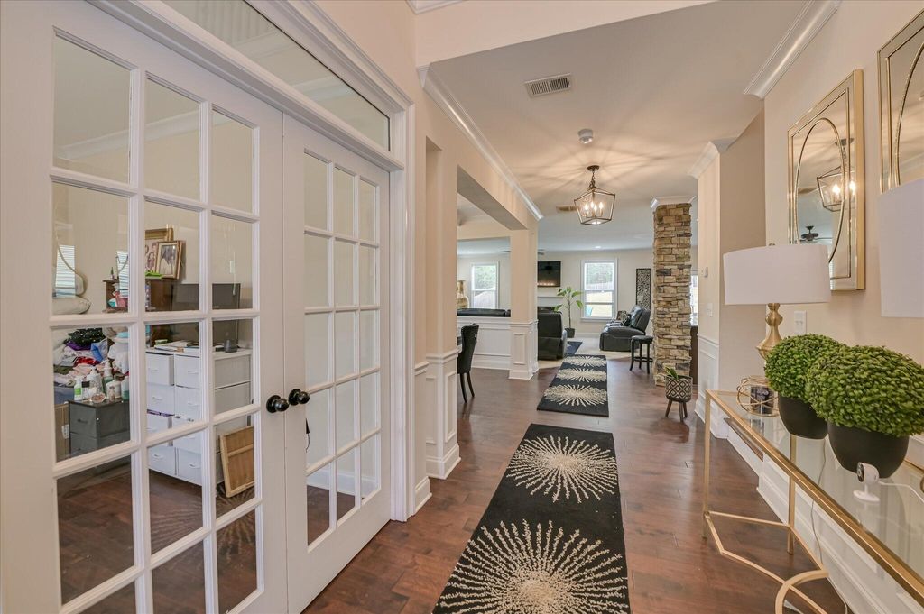 Welcome to 825 Burch Creek Drive - an exquisite two-story masterpiece nestled in the heart of Grovetown, GA. This stunning 5-bedroom, 4-bath home blends timeless elegance with modern luxury, offering comfort, style, and space for both everyday living and grand entertaining. Step inside to be greeted by gleaming hardwood floors and a dramatic foyer that sets the tone for the exceptional craftsmanship found throughout the home. The open-concept layout flows effortlessly into the show-stopping gourmet kitchen"”an entertainer's dream"”featuring striking stone columns, a large center island, an oversized bar counter, and premium finishes throughout. Culinary enthusiasts will appreciate the 5-burner gas range, double convection ovens, brushed nickel pot filler, wine center, and generous counter space designed for effortless cooking and gathering. The main level includes a beautifully appointed guest suite with a full ceramic-tiled bath"”ideal for visitors or multigenerational living. Relax in the elegant living room centered around a marble fireplace, or gather in the cozy keeping room, bathed in natural light from bay windows and illuminated by a statement chandelier. Host memorable dinners in the formal dining room, and find focus and productivity in the private home office with classic French doors. Upstairs, the expansive owner's suite is a luxurious escape"”featuring vaulted tray ceilings, a romantic fireplace, and dual walk-in closets. The spa-like ensuite bath invites relaxation with a steam shower, soaking tub, and dual vanities. With four additional generously sized bedrooms, this home offers ample room for family and guests. A spacious 3-car garage, thoughtful upgrades, and impeccable attention to detail make this residence truly stand out. Located in a sought-after Grovetown community near Fort Eisenhower, top-rated schools, shopping, and dining, 825 Burch Creek Drive delivers the ultimate in refined Southern living. Don't miss the opportunity to call this extraordinary home yours. Schedule your private tour today!