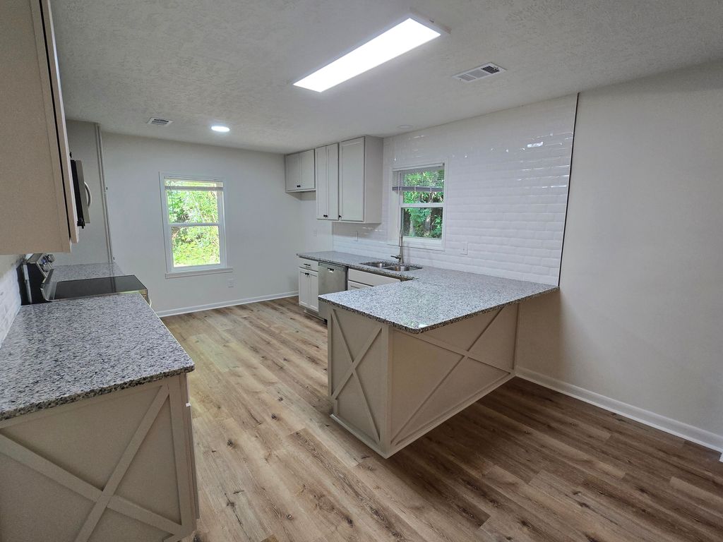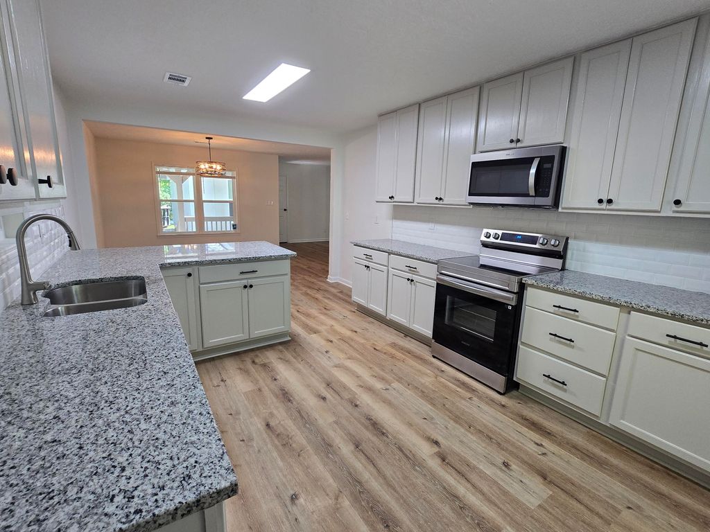 Owner considers Lease with Option to Buy. ⅓ acre lot Water view across the street. NO HOA - NEW roof with architectural shingles, new windows, new hvac, (water heater is a few years old) new 20 mil luxury vinyl floor, new cabinets, new granite countertops, new appliances, fully remodeled bathrooms with new vanities, plumbing, tile surround, LVP flooring, new ceiling fans, freshly painted inside and out, 3 bedrooms, 2 baths, living room, eat in kitchen, laundry room, 2 car garage, partially fenced yard. Evans Elementary, Middle & High. Owner/Agent.