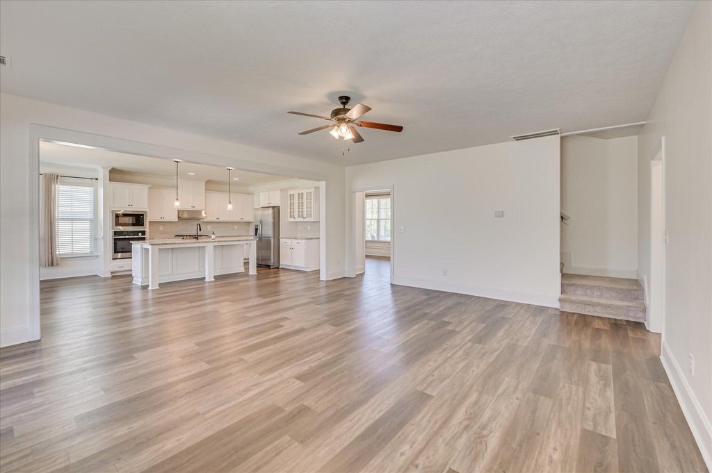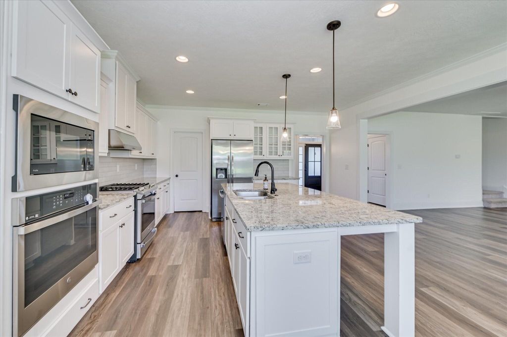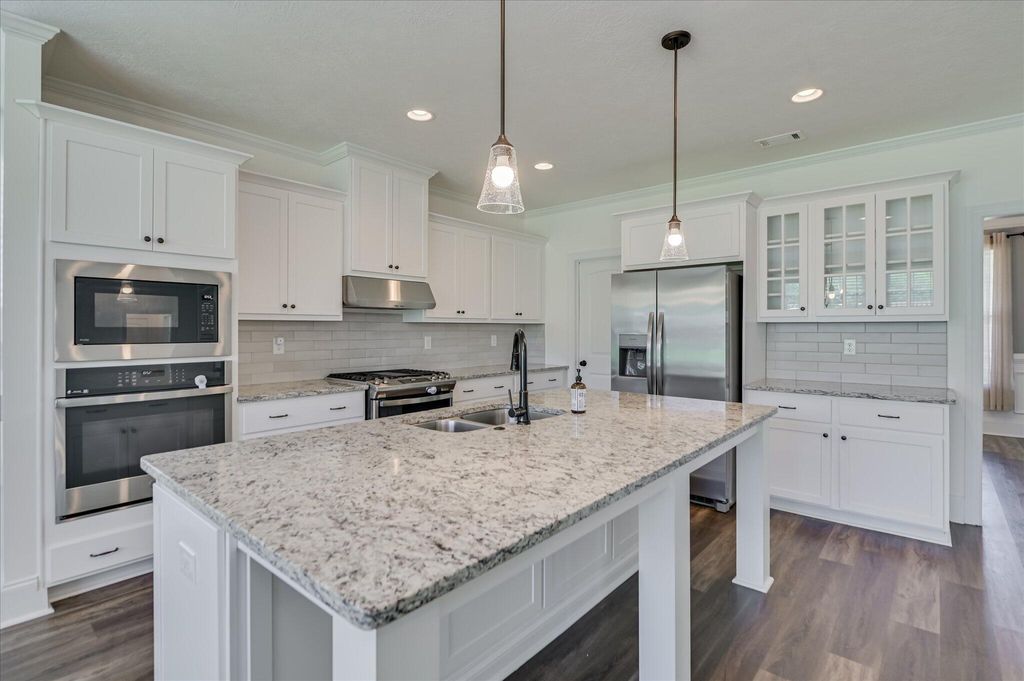 5 bed 3 bath home in desirable Kelarie neighborhood. This home has covered front and back porches perfect for rocking chairs and lounging. Inside is hardwood flooring throughout all living areas including foyer, dining room, great room kitchen and breakfast area. Kitchen boasts granite countertops, tile backsplash and stainless steel appliances. Large island overlooking the great room with open concept perfect for entertaining. 1 spare bedroom and full bath downstairs along with primary suite and 3 more spare bedrooms upstairs. This home is a must see!
