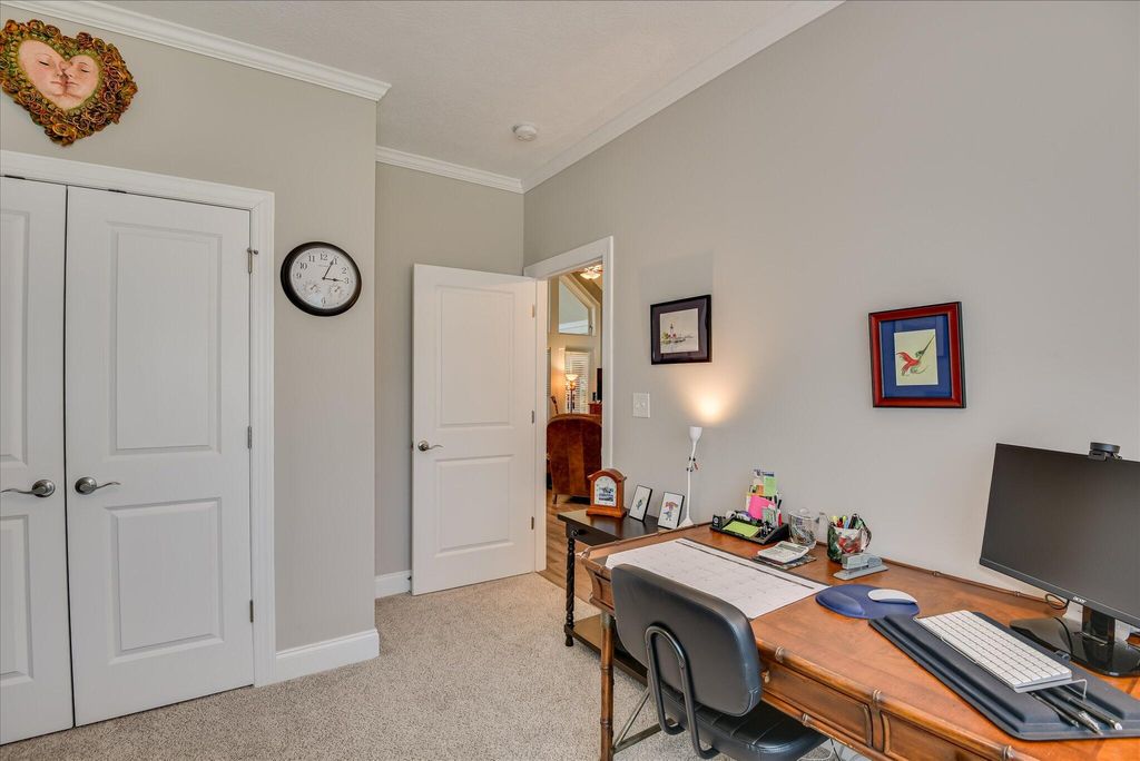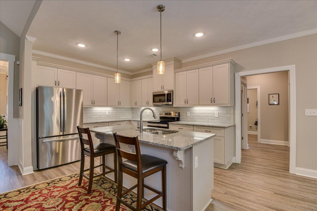 PICTURES DON'T DO IT JUSTICE! This beautiful golf home, in the desirable Monticello neighborhood of Savannah Lakes Village, with views of the 7th hole tees on the premier Monticello Golf Course is situated with common property and golf course on two sides. Gardeners will love the south facing frontage with plenty of sun in front for flowering plants and trees, while the grilling patio out back offers shade to cool you in your down time. The vaulted ceilings in the 4-season sunroom and the great room, with transom windows between the two allow natural light to flow through the living space, as you sit in comfort. During the cooler winter months, the propane fireplace adds warmth and ambiance to the great room and a warm glow for anyone working in the spacious kitchen. This home also offers details that enhance your life and the ambiance of the home, such as the spacious center island in the kitchen, the externally exhausted over-the-range microwave, the large, walk-in pantry, the crown molding in the kitchen, foyer and bedrooms, wainscoting in the foyer and dining room, the tiled backsplash in the kitchen, the fully tiled glass enclosed primary shower and floor and large walk-in closet with organized shelving and storage on three walls. The LVP flooring in the living space and foyer ties everything together, welcoming you in the moment you set foot in the door. The icing on the cake - your new home is located in the Monticello neighborhood in Savannah Lakes Village. Living here means you are part of a vibrant and active community, which includes access to WCTEL's high-speed gigabit fiber network. You'll be located near access to Lake Thurmond, which provides some of the best freshwater fishing the southeast has to offer. Within the village you will find all of the on-site amenities it has to offer - four eateries, 2 premier golf courses, tennis, pickle ball, indoor and outdoor pools with hot tub and sauna, fitness facilities, bowling lanes, walking trails and so much more. Take the time to tour this home and you will not be disappointed!