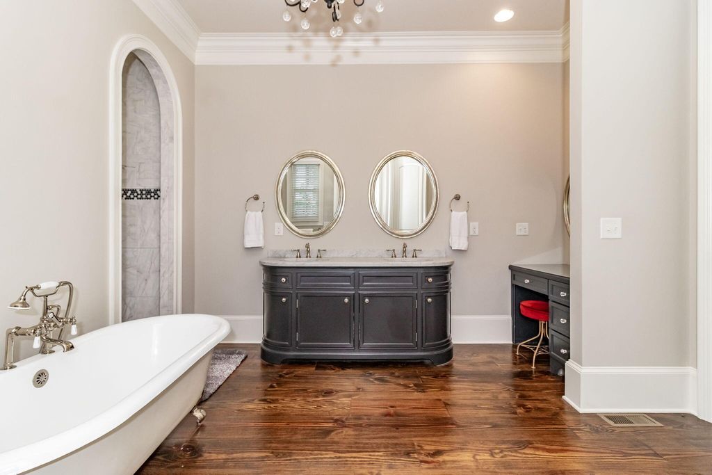 Gorgeous, stately all brick home situated on over an acre behind the gate of Riverwood Plantation in exclusive Champion's Retreat. Perfectly located, overlooking the green for hole #4 and the tee box of hole #5, this home is second to none! Featuring 5 bedrooms and 5.5 bathrooms, this custom-built beauty offers 5,165 heated square feet, and has all the details one could hope for, including 10ft ceilings, 8ft solid wood doors, wide-plank hardwood floors, & granite counters throughout! Herringbone brick details welcome you as you pull into the generous driveway and up to the distinguishing 3 solid wood door, triple car garage (w/ golf cart garage and utility shelving in back). At the arched entryway, you'll notice the pine ceiling front porch with gas burning lanterns and beautiful solid wood French doors. The two-story foyer welcomes you with floor to ceiling judges paneling and above you will find an arched balcony, adorned with wrought iron railings. The stately dining room is trimmed out to greet its guest upon arrival and welcomes the perfect flow for entertaining back into a spacious great room with bricked fireplace, built-in shelving, solid wood mantle and coffered ceilings. From the great room, you'll notice the beautiful brick arbor transition into the kitchen. This lavish kitchen is a chef's dream! With the abundant island, offering seating for 6, stainless appliances to include a double commercial refrigerator, oversized 6 burner gas cooktop, dual built-in ovens situated in custom solid wood and glass lit cabinetry! The main floor Owner's suite is a complete oasis with ensuite featuring chandelier, marble topped vanity and makeup vanity, dual entry to the massive walk-in multi head and body spraying shower with marble accents and a timeless clawfoot tub. Storage will not be an issue for any fashionista either, in the completely custom closet! A 2nd bedroom with bath makes a convenient study or main floor guest room. Walk up the wrought iron railed stairs to 3 additional generously sized bedrooms (all with their own bath) and a large flex space used as an exercise room (both with surround sound). The beauty continues with French doors leading out to the large, flat backyard. A maturely manicured property with 2 patios (1 covered with pine ceiling and the other uncovered) welcomes you to enjoy the outdoor space as well! No worries on the 5 bathrooms, you will never run out of hot water since it also offers a gas tankless water heater. It is no surprise this home has an impressive golf tournament rental history!! No detail has been missed in this completely custom home! The sellers are set and ready to make this your buyers next home.