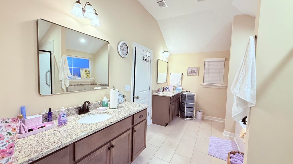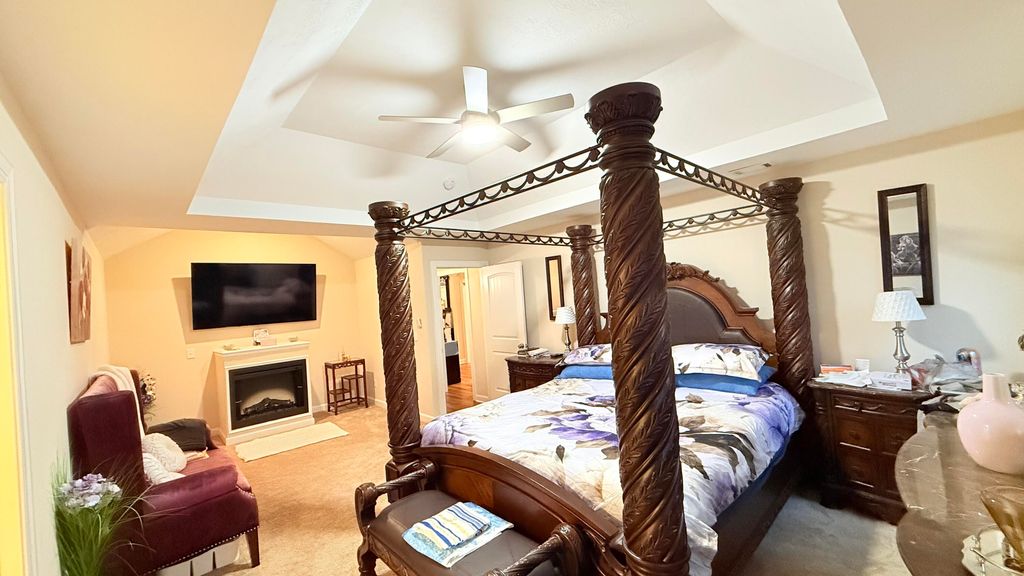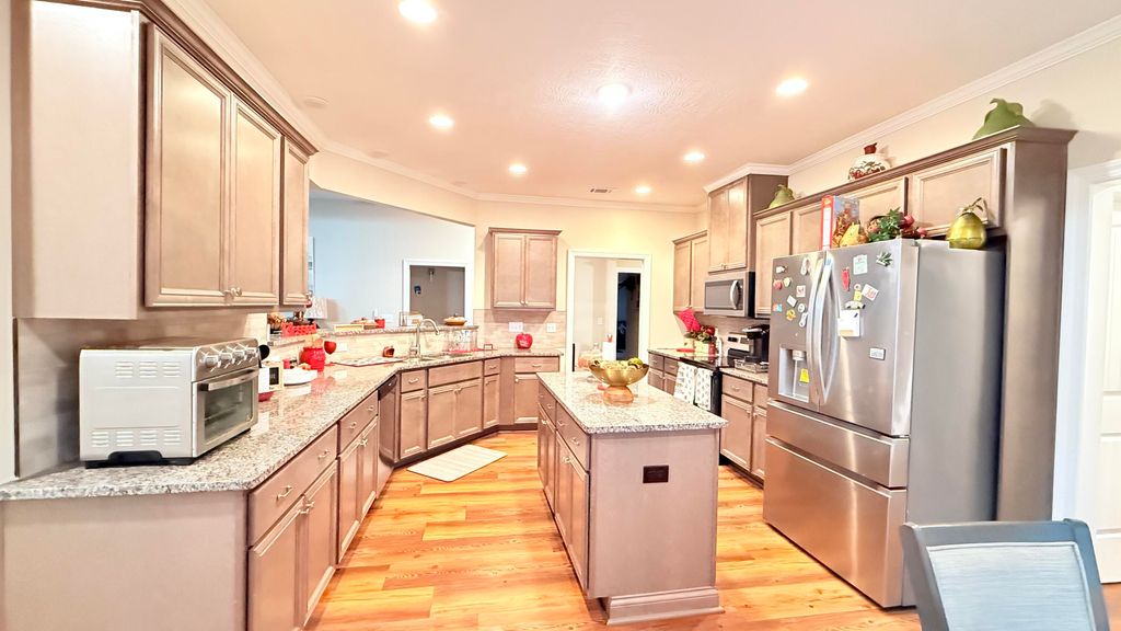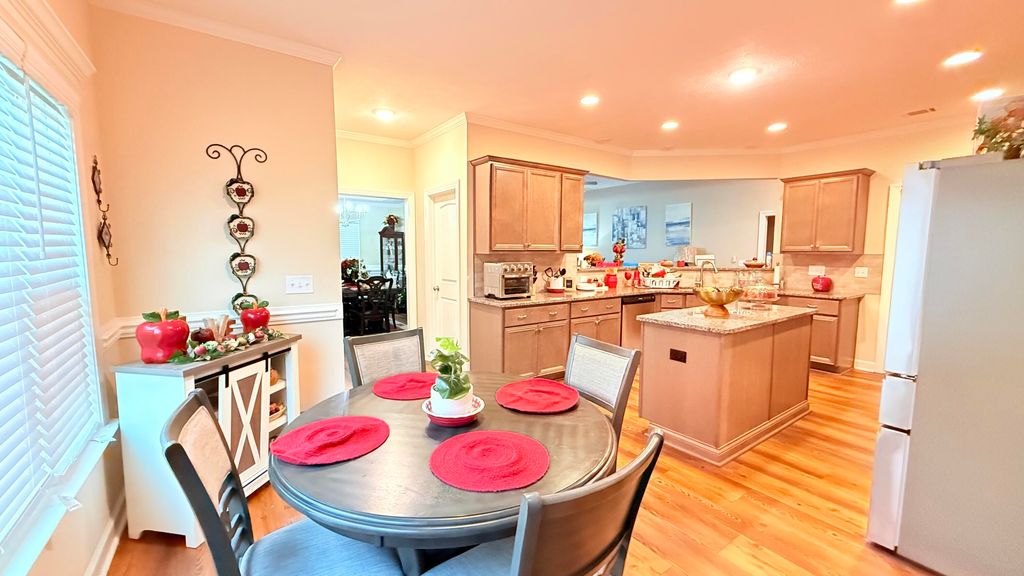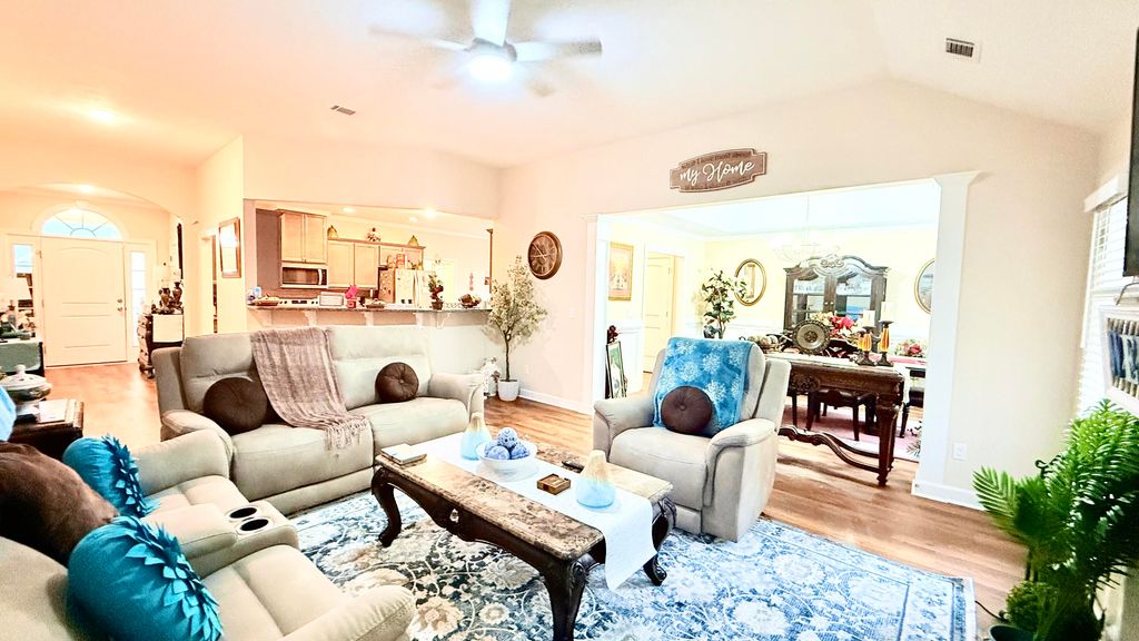 Immaculate 2022 Estate featuring 4 bedrooms and 2.5 baths with enchanting arch entryways, beautiful granite countertops and luxury vinyl floors throughout. Fall in love with a kitchen that has all the cabinetry and counter space one could want with an extra large island and spacious sunlit breakfast area. It effortlessly flows to the dining room as you pass the 2 pantries where you can keep all your goods. Living quarters feature a fireplace/mantle and cathedral ceilings for a feeling of openness. Primary bedroom also comes with its own fireplace, sitting area and walk in closet. Double vanities, a gorgeous soaking tub, and a stand alone glass door shower, your own luxurious spa retreat! The other 3 bedrooms are of good size and separate from the primary. Double car garage has a perfect mudroom area near the laundry room. Sure to enjoy the sunrise and sunsets on your covered patio in your fenced backyard. Nice and quiet neighborhood, close to Ft. Eisenhower and I-520. Sprinkler system. 2 Fireplaces. Everything you want under 400k, 2400sqft on more than half an acre.
