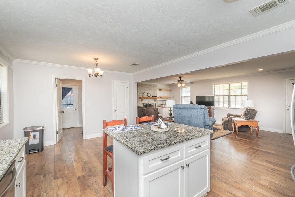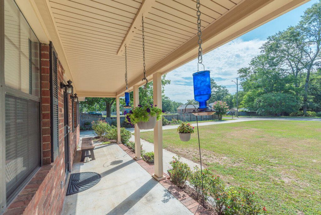 NICE BRICK RANCH HOME, UPDATED AND MOVE IN READY! This home has everything you need. Rocking chair front porch, large great room with white washed brick wood burning fireplace, with built in cabinets and shelving on both sides. Open kitchen with stainless steel appliances, island with seating for 2, custom cabinets, granite countertops, breakfast room. Laundry room with storage, and cabinets. Owner's bathroom has walk-in shower with safety bars, new toilet, granite counter tops. All bedrooms are carpet and have large closets with shelves. Hall bathroom with tub, granite counter tops. Beautiful back yard, privacy fenced, 3 storage building, back patio for entertaining. Enter home through the front porch or the Laundry room and all doors have steel storm doors. Close to shopping, Fort Gordon, restaurants and more.