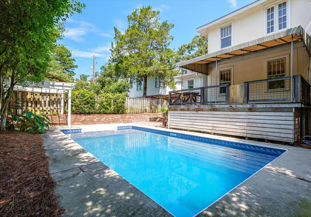 Welcome home to 2220 Kings Way located in the heart of beautiful Summerville in Augusta, Georgia. Built in 1921, this elegant two-story home features an attached carport, an inground pool, and original architectural details such as transom windows, hardwood floors, clawfoot tubs, built-in cabinetry, and multiple fireplaces. A beautiful arbor and herringbone brick walkway lead you to the covered front porch and into the foyer where you will discover the original staircase and beautiful hardwood floors. As you continue to explore this 3111 sqft home, you will find the living room with plantation shutters, original hardwoods, and a fireplace in addition to a spacious formal dining room with gorgeous crystal chandelier, original hardwood floors, and a fireplace. The eat-in kitchen has a striking brick accent wall, solid surface countertops, a new induction range, pantry, and custom-built hood. There is a flex room with plantation shutters and a private bathroom that features a custom built shower. This room also provides access to the main level primary bedroom complete with custom built-ins with stained glass accents, original hardwood floors, plantation shutters, and an attached bathroom that boasts the original clawfoot tub, custom built-ins complete with a bench for seating, and tile flooring. Upstairs you will find a second primary bedroom complete with a fireplace, original hardwood floors, and an attached bathroom with two walk-in closets while bedroom 2 is next door and features a fireplace and ceiling fan. The additional two bedrooms are connected, and the original sleeping porch has been renovated to include a built-in Murphy bed and custom-built closets. The 4th bathroom is located on the upper level and boasts the original clawfoot tub and pedestal sink. Finishing out the second level, you will discover a flex room that would be perfect for a craft room or office that leads to the spacious laundry room complete with original built-in cabinets and additional storage space. Returning to the main level, the back door is just off the flex room and leads to a large, covered deck, with new awning, that overlooks the 16 x 32 inground pool. The beautifully landscaped backyard is perfect for entertaining and provides a lovely pergola, vintage refrigerator, and built in stone pizza oven. The HVAC units and water heater were replaced 2 years ago, and the metal roof was recoated by Penn roofing within the last two years. Schedule your appointment today to view this charming and exquisite home located at 2220 Kings Way in Augusta, Georgia.