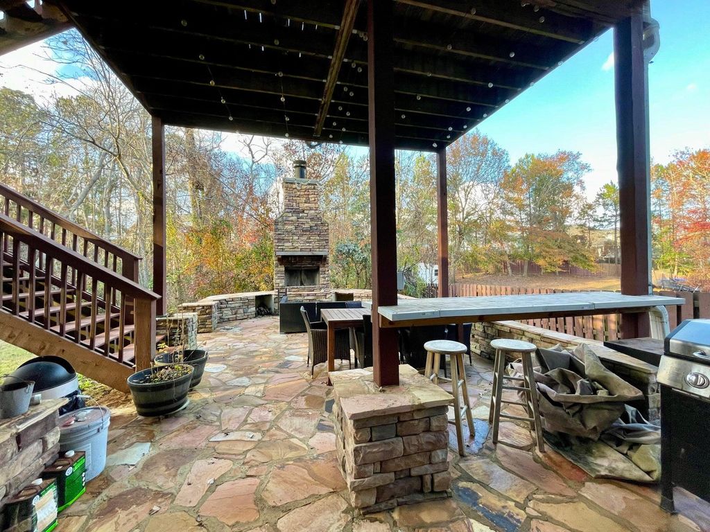 Discover this Stunning Home in Beautiful Sumter Landing! Step into this meticulously maintained two-story gem with a fully finished basement, offering 6 bedrooms and 5 full bathrooms. From the inviting rocking-chair front porch, you'll enter a welcoming foyer that flows into a spacious living room featuring a cozy fireplace and real hardwood floors"”perfect for family gatherings and entertaining. To the left of the foyer is a formal dining room, ideal for hosting dinners. The kitchen is a chef's dream, outfitted with stainless steel appliances, including a refrigerator, dishwasher, microwave, and an induction cooktop seamlessly integrated into beautiful quartz countertops. Ample cabinet space and a pantry provide all the storage you'll need. The upper level boasts 4 bedrooms and 3 full bathrooms, including the luxurious primary suite. Downstairs, the finished basement offers even more space to enjoy"”a large game room, a second living area for entertaining, the 6th bedroom, and the 5th full bathroom. Plus, there's a home theater, perfect for family movie nights. Step outside to a custom stone patio with a built-in fireplace, nestled below the screened-in back porch and wooden deck"”an ideal setting for cookouts and outdoor fun. This home also features plenty of storage throughout, making it as practical as it is beautiful. Don't miss out on this incredible opportunity to call Sumter Landing home!