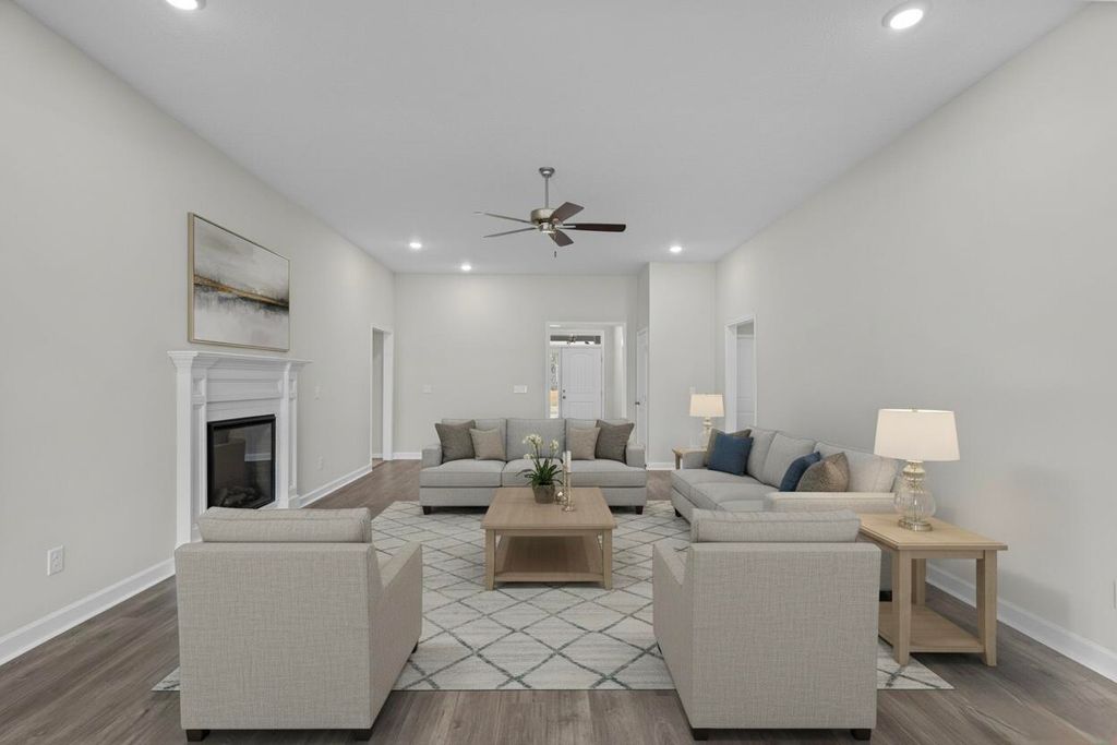 Welcome to Hayne's Station! Augusta's premier community featuring two community pools and ideal location near Fort Gordon. Bill Beazley Home's introduces it's newest plan, the Olmstead 2. Easy living starts on the rocking chair front porch on this efficient home. Inside the foyer opens up to a large great room with electric fireplace with Evacore Click waterproof flooring. The dining room opens to the large kitchen with island, stainless steel appliances, granite counters and decorative tile backsplash. There is extra storage in the power pantry just off the kitchen. Bedrooms are split for added privacy. Home includes security panel, CAT 6 wiring, video doorbell, sprinkler system, and fenced yard. Builder is also offering a permanent interest rate buydown as low as 4.99% for qualified buyers, on VA and FHA loans with preferred lenders, through February 28, 2026. Builder is also offering a 7000 dollar incentive to use towards closing costs or upgrades. 625-HS-7009-01
