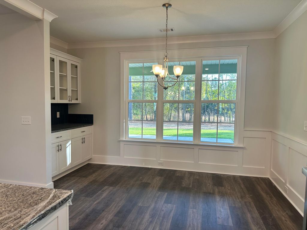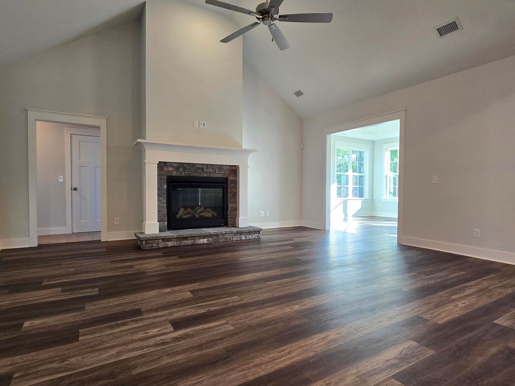 Welcome to the COLUMBIA 14, a stunning 4-bedroom, 2.5-bath ranch home in The Retreat at Storm Branch. Designed for modern living, this home features a sunroom, power pantry, breakfast room, and formal dining area. The main living spaces are enhanced with Evacore Waterproof Click Flooring, while the kitchen impresses with granite countertops, a spacious island, a full tile backsplash, custom cabinetry, and a GE Stainless Steel Appliance Package including a farmhouse sink and a power pantry ready for an extra fridge. The great room boasts soaring ceilings, a ceiling fan, and a vented gas fireplace for added comfort. Retreat to the owner's suite, where a trey ceiling, walk-in closet, and a spa-like bath with quartz countertops and ceramic tile await. Energy-efficient features include a tankless water heater, Smart Thermostats, and insulated windows. The home also includes architectural shingles and a video doorbell. Step outside to enjoy covered porches and take advantage of community amenities such as a resort-style pool, pavilion with an outdoor fireplace, paved trails, pickleball courts, and more. Currently under construction. Builder is offering an 8,000 incentive that can be used towards closing costs, upgrades, or to buy down the interest rate. 625-TR-7009-01