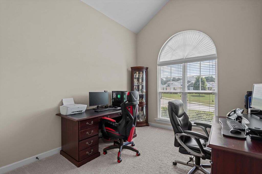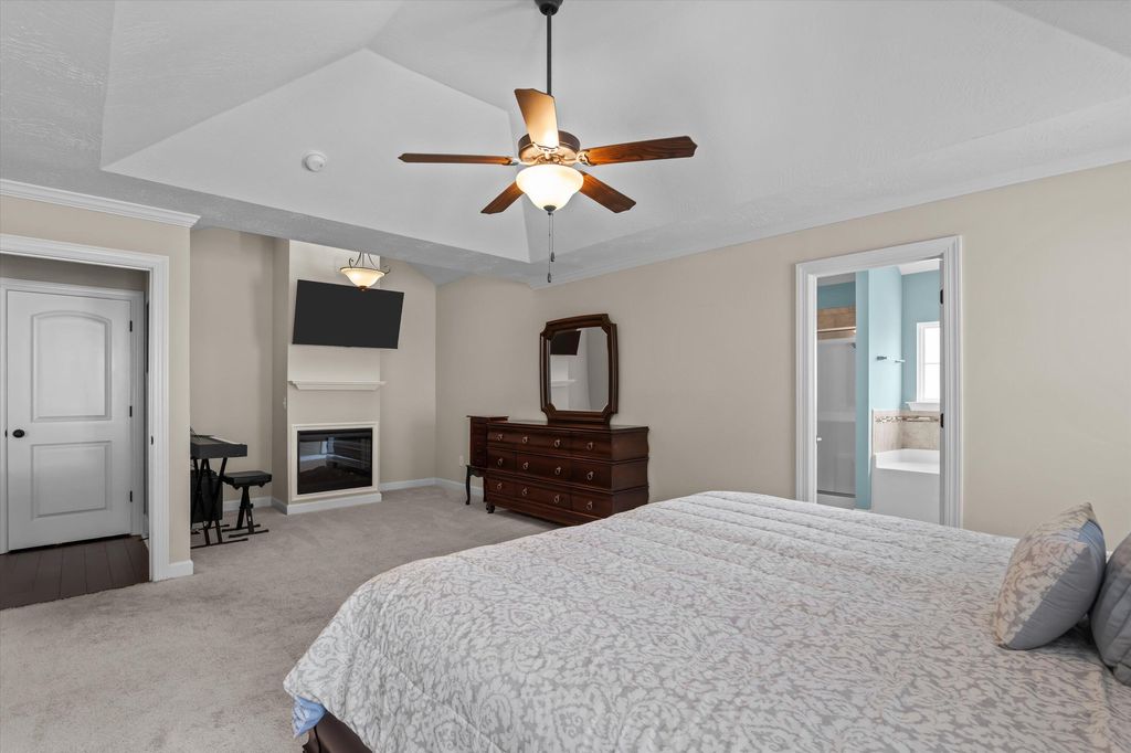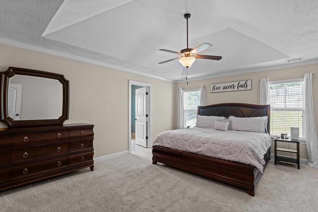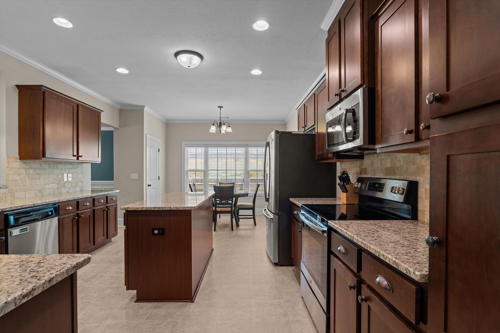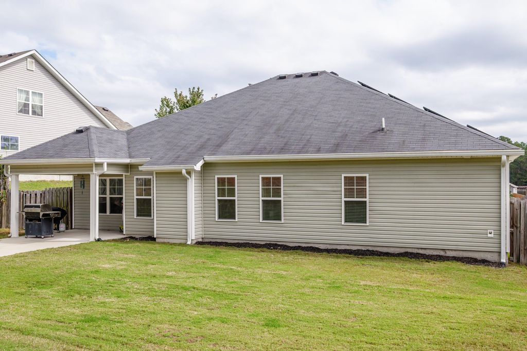 This beautifully maintained, energy-efficient home in the sought-after Gregg's Mill neighborhood comes complete with solar panels that cover the power bill, even in the hot summer with AC running, and it is truly move-in ready! Step inside to a spacious foyer that flows seamlessly into a stunning great room with soaring ceilings and a gas fireplace. The open concept design leads you to the show stopping kitchen, complete with an abundance of counter space, granite countertops, a stylish backsplash, a center island, a breakfast nook, and easy access to the formal dining room that is perfect for entertaining. A spacious laundry room and convenient half bath are located just off the kitchen. The oversized owner's suite is a true retreat, featuring an electric fireplace, dual vanities, a large walk in shower, and a generous walk-in closet. On the other side of the home you'll find three additional bedrooms and a full bathroom, offering privacy and flexibility for guests or family. Enjoy outdoor living on the covered rear porch overlooking the backyard, where French drains have been added to both sides of the property for peace of mind. All of this is located in a welcoming community with sidewalks for evening strolls and a neighborhood pool to enjoy all summer long!
