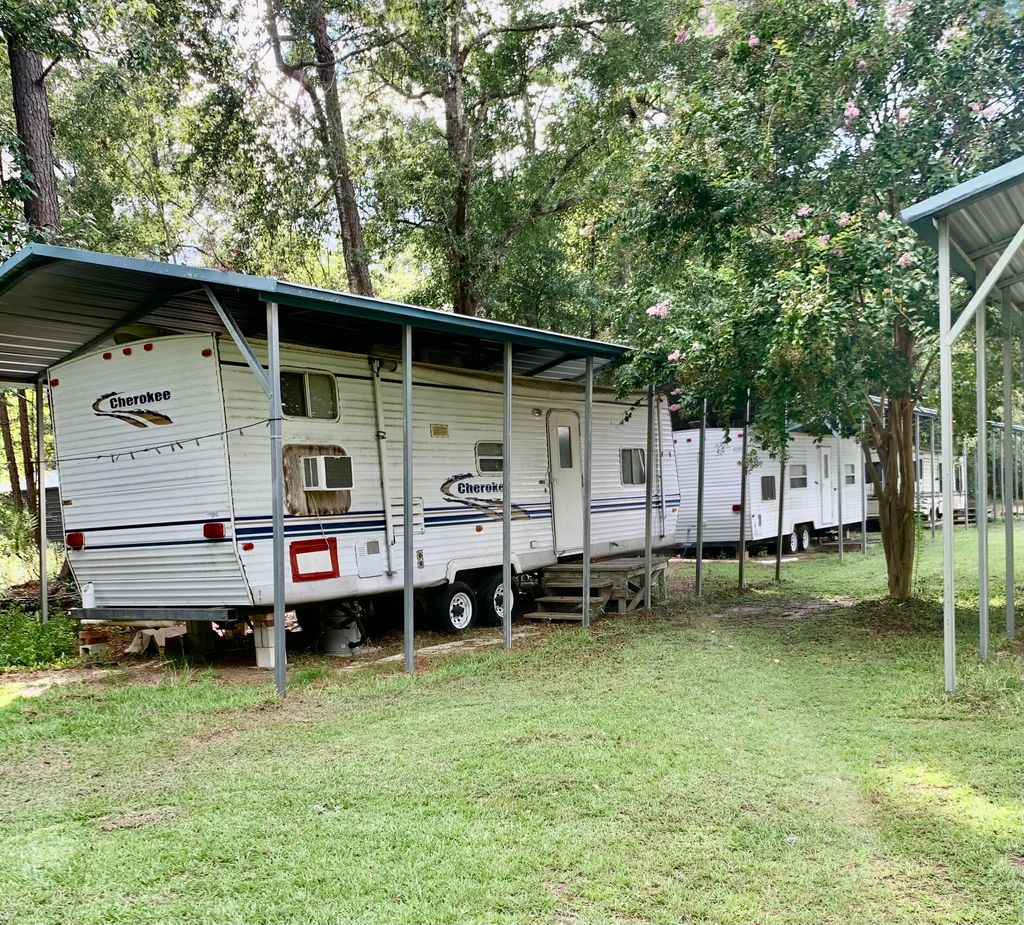 Step into serene, wooded privacy on this expansive 7+ acre parcel, perfectly poised between peaceful escape and smart investment. Nestled within mature trees, the charming, well maintained modular home offers cozy, rustic charm that is ideal as a full-time retreat for the owner. It also offers a great rental opportunity, with a strong potential to earn up to 1,500 per month. In addition, the substantial workshop stands ready to support hobbies, crafts or small-scale business ventures. The revenue opportunities don't stop there. Added to this unique package are nine rentable campers each generating potential of 600 or more per month (64,800 annual gross income) providing immediate, reliable income and calling out to savvy investors or lifestyle seekers. Whether you envision a secluded homestead, an income-generating retreat, or something in between, this versatile parcel invites you to capitalize on tranquility, flexibility, and opportunity all in one private, picturesque setting. There are two separate parcels and may consider selling separately. In case you cannot reach Wayne, please feel free to call Janie Terrell Peel with Auben Realty.