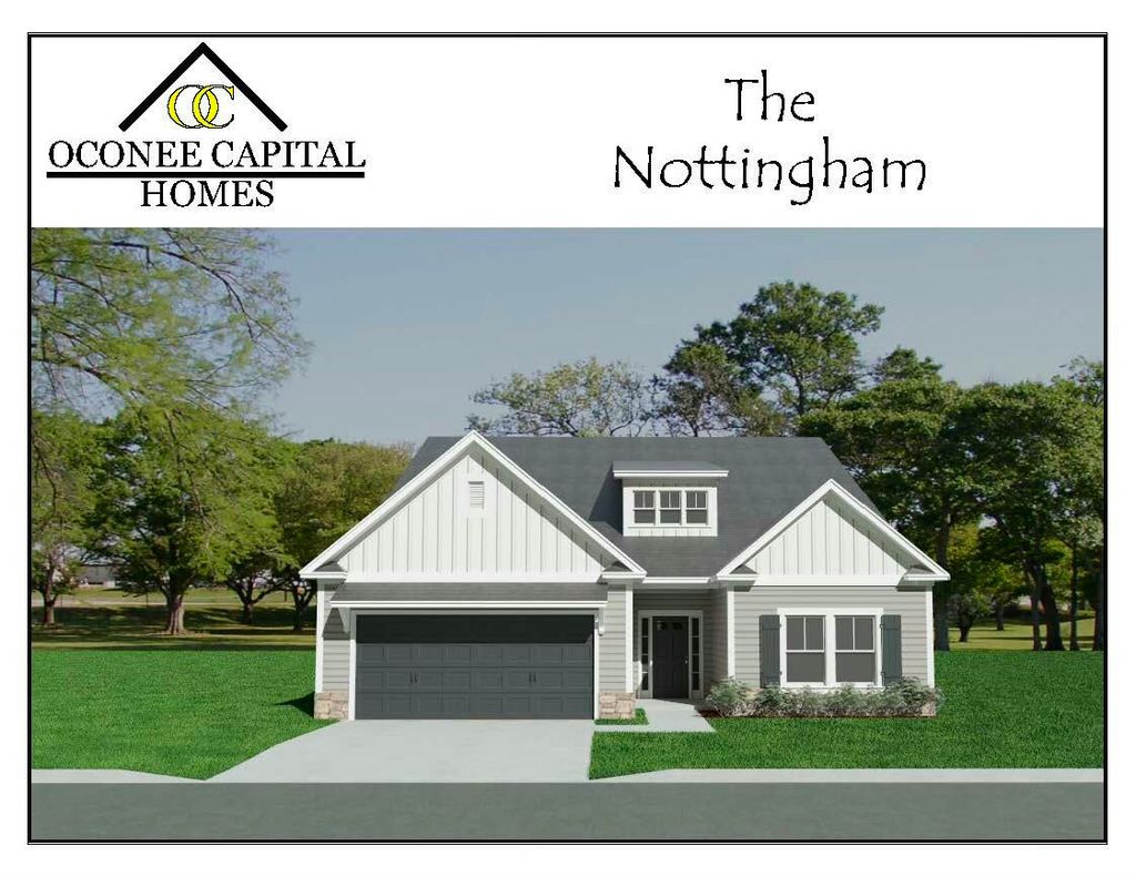 The Nottingham Plan by Oconee Capital Home Builders. This stunning single-story home offers 3 bedrooms, 2 full bathrooms, and an open-concept layout perfect for modern living. The spacious great room features an electric fireplace and seamlessly connects to the kitchen and dining area. Ideal for entertaining. Throughout the home, you'll find elegant lighting and detailed custom trim work that adds a touch of sophistication. The kitchen is a true centerpiece, complete with granite countertops, a stylish tile backsplash, and stainless steel appliances. The owner's suite is designed for comfort, offering a double vanity, walk-in shower, and generous walk-in closet. Two additional bedrooms share a well-appointed full bath. Step outside to enjoy your fully landscaped yard from the comfort of your covered front or back porch. Located in The Sanctuary, this community offers sidewalks, streetlights, a scenic walking trail, and a large community garden"”perfect for those who value a connected and easygoing lifestyle. Just minutes from Downtown Aiken, Bruce's Field, Hitchcock Woods, top equestrian venues, shopping, and fine dining. Note: Photos shown are of a previously built Nottingham Plan. Home features, finishes, colors, and fixtures may vary. Buyer to verify square footage and school zones.