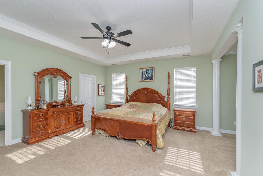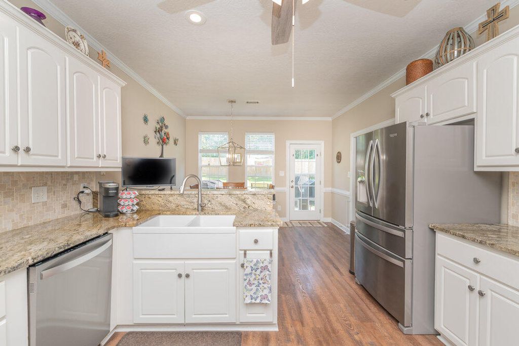 Spacious Home in Windmill Plantation with HUGE MAIN FLOOR Owner's Suite! Formal Living and Dining Room. Great Room with fireplace and built-ins. Kitchen with granite countertops and stainless steel appliances. Nice size Laundry Room with storage. Upstairs is a LOFT, three bedrooms and an Extra Room for office/bedroom possible 5BR. Large, landscaped and private fenced backyard. Side entry garage with extra parking pad.