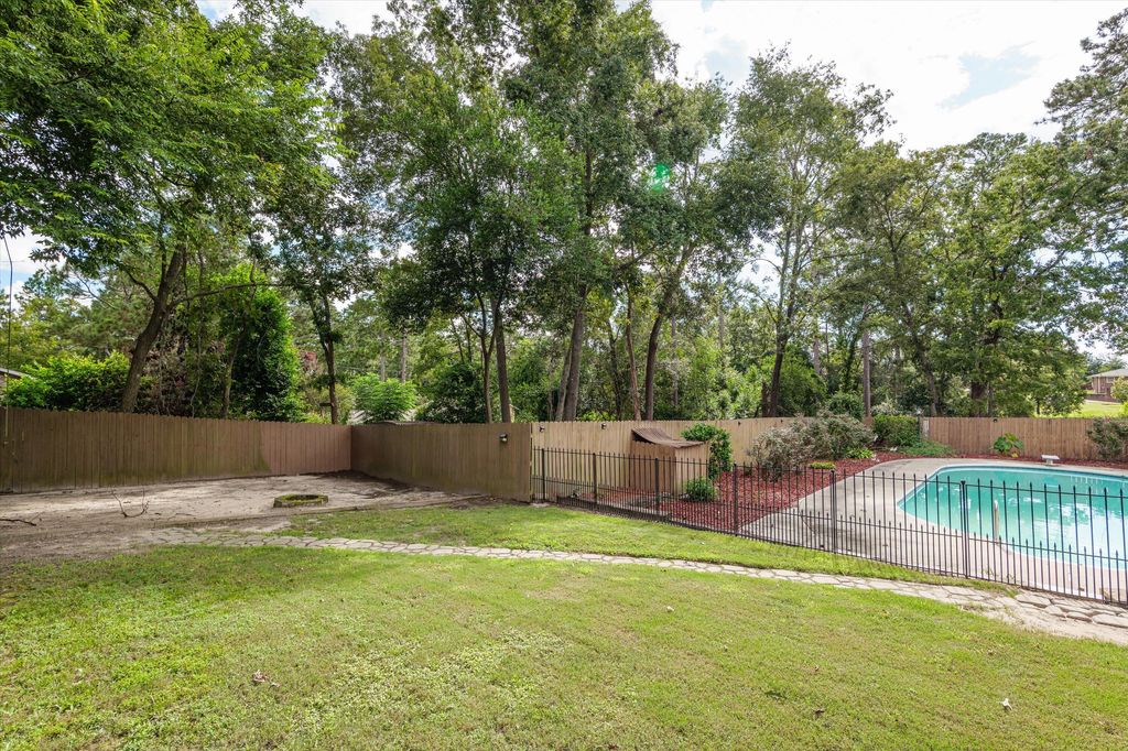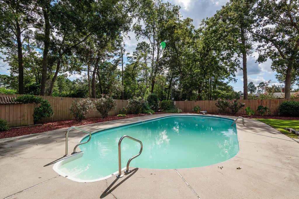 Looking for an all brick ranch style home on a large lot in a golf course community with a lower walk out level and a pool? This well maintained Midland Valley Estates home on 0.73 acres is ideal for outdoor enthusiasts. The rocking chair front porch has two entrances, one enters into the foyer area and the other enters into the great room area. Off of the foyer is a bedroom that would also make a great office area.The large great room with a fireplace opens up into the expansive kitchen that is sure to impress anyone. The expansive kitchen features an abundance of cabinet space, granite counter tops, eat in bar area, built in trash can, under cabinet lighting, kitchen sink with a window that overlooks the sunroom, double ovens, pendant lights,backsplash, dishwasher, large pantry with built in shelving, and a wet bar area with an extra sink. Off of the kitchen is a dining room with double doors going out to the back deck. Laminate flooring in the kitchen and the dining room. The large primary bedroom is on the main level and features a walk in closet, ensuite bathroom with a new insert stand alone shower with tile surround, double sinks, linen cabinet area, jacuzzi tub with granite surround, and tile flooring. Off of the main level is another bedroom as well as a spare bathroom with a double vanities, shower tub combo with a glass sliding door & tile surround, and tile flooring. Additional large storage room off of the great room and double doors in the great room with access to outside. The wood stairs lead down to the lower level that features a large rec room with a brick fireplace and another office room off to the side. On the lower level there is also a bedroom, spare bathroom, and laundry area. The lower level also has a door that leads to the outside access which is perfect for coming in from the pool. This home has a dream 2 1/2 car garage (34x21), with a 2 car stall and a large workshop area. Enjoy the private fenced backyard and pool with its covered and uncovered patio spaces as well as a deck made of composite material that overlooks the well-groomed backyard with stone accent areas around the stairs. The lower level deck area is expansive and great for entertaining. There is also a sunroom off the upper deck. Along with the fenced pool area, there is a separate fenced area for dogs or kids to enjoy and a fire pit area. The house can be 4 bedrooms and a rec room or 5 bedrooms. The property lines extend past the fenced area, see pictures for details. House is conveniently located between Aiken and Augusta.