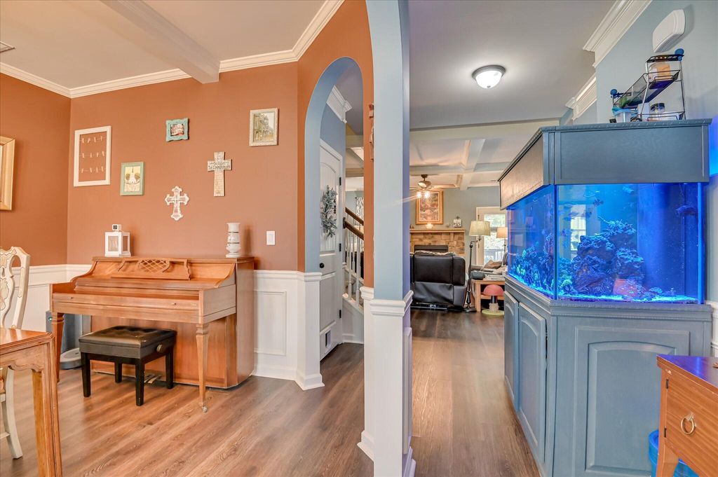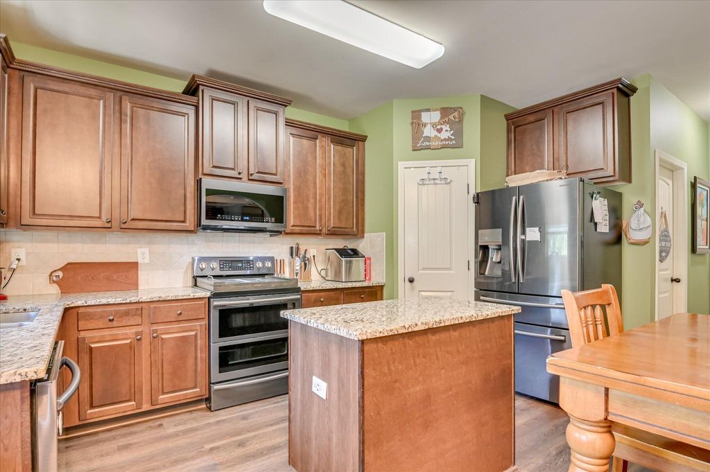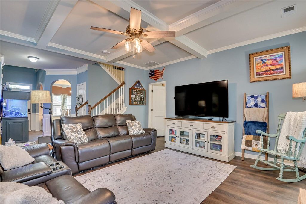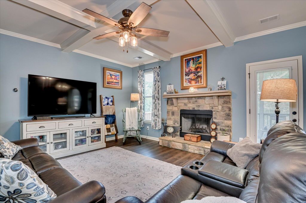 This beautifully maintained home offers nearly 3,000 sq ft consisting of 4 bedrooms and 3.5 bathrooms along with approximately 1,200 sq ft of unfinished basement that is fully HVAC'd and plumbed just awaiting your final touches. The owner's suite is located on the main floor, featuring a bay window with peaceful views of the green space, a spacious custom walk-in closet, dual vanities, a separate shower, and a relaxing garden tub. Upstairs, one bedroom includes its own private bath, while two additional bedrooms share a convenient Jack-and-Jill bathroom. The living room centers around a cozy wood-burning fireplace, creating a warm and inviting space. The formal dining room is enhanced with an elegant, coffered ceiling, while the eat-in kitchen offers granite countertops, a tile backsplash, pantry, and a full suite of appliances, including a smooth-top stove, dishwasher, microwave, and refrigerator. Additional features include a downstairs laundry room, a two-car garage, and a covered back deck that is screened in with ceiling fans, perfect for year-round outdoor enjoyment. This home combines space, style, and quality. Ideally located near Fort Gordon, shopping, and hospitals, it's move-in ready and offers exceptional convenience. Upgrades in the last five years include: Nov 2020-Upstair A/C replaced both inside and outside and 3rd A/C unit added to the basement, Jan 2023- LVP flooring on the whole main level and all common upstairs areas and bathrooms, May2024-Whole roof replaced with architectural shingles, July 2024-Tuff Shed Premier 16x18 Tall Barn installed with loft and workbench down one side and along the back, and upstairs bedrooms painted in Aug 2025. If you are looking for a great location, tremendous sq ft for the price, and the ability to finish an additional 1,000 sq ft to your liking, this is the home for you.
