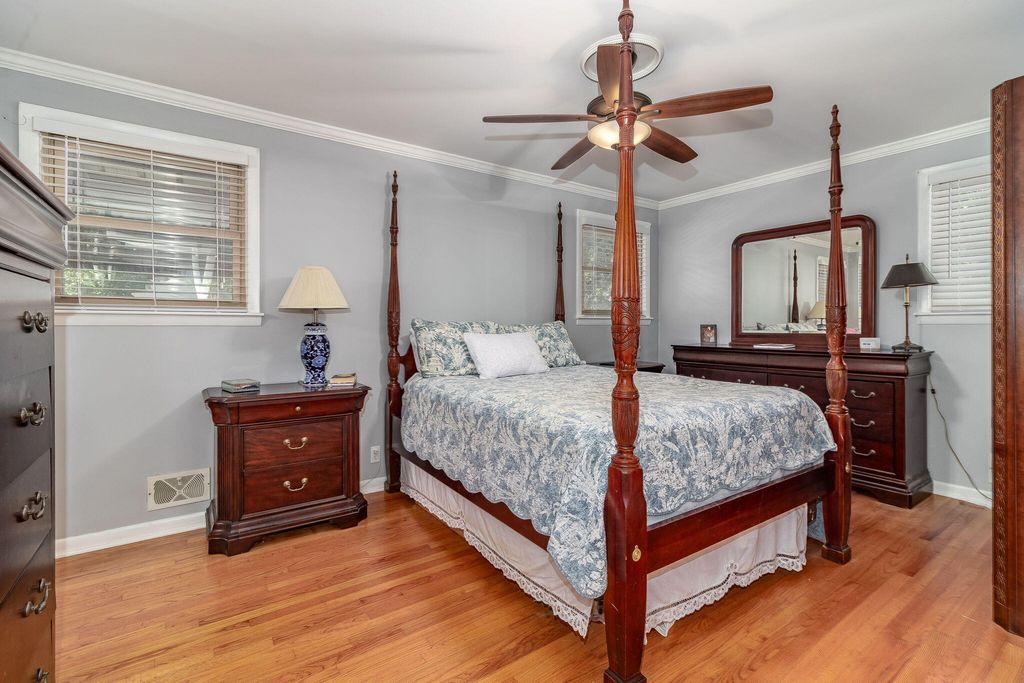 Welcome to this beautifully crafted and meticulously maintained home in the highly sought after Brynwood neighborhood. Over the years, this residence has been thoughtfully transformed with quality craftsmanship and timeless design. Step inside to hardwood floors, crown moulding, and plantation shutters that enhance the inviting living and dining rooms. The updated kitchen features an island, breakfast area, and a convenient Butler's pantry. The guest suite offers comfort with its brick fireplace, full bath, and walk-in tile shower. The sunken family room is filled with natural light from wrap-around windows, creating the perfect gathering space. The spacious primary bedroom includes an en-suite bath, and all bedrooms boast hardwood floors and generous proportions. Outside you will enjoy a covered deck with ample seating and a supplemental shaded patio. There is also a garden shed and a two-car detached carport.