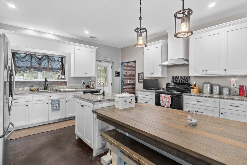 Set on over 1.5 acres, this 3,600 sqft barndominium-style home built on red iron steel beams, offers the perfect balance of modern comfort and quiet, rural charm "” all less than 30 minutes from Augusta. Escape the noise and discover your own slice of peaceful living in Matthews, GA. Step inside to an open and inviting living area anchored by a wood-burning fireplace capable of heating the entire home, flowing easily into a modern kitchen with granite countertops and an island, with plenty of space for gathering. Spend your mornings on the rear deck, watching the sunrise, and relax on the oversized front porch in the evenings, enjoying the sunset. With 5 bedrooms, 3.5 bathrooms, a multi-purpose room, and an upstairs loft, there's room for everyone "” whether you're hosting family, working from home, or simply spreading out. Family in town for the weekend and all the rooms are somehow full? Have your cousin hook up their camper on the side of the home. The primary suite is on the main level, providing a private retreat, while upstairs offers spacious secondary bedrooms. Love the outdoors? The backyard is already set up with a small paddock for horses and other farm animals, giving you the chance to create your own miniature homestead. A garage/workshop adds even more flexibility for hobbies, projects, or extra storage. Built in 2017, this home offers the rare combination of modern construction, rural privacy, and a property designed for those who want room to breathe, all within double-insulated walls that keep the power bill to a surprising minimum throughout the year. Whether you're dreaming of raising animals, growing a garden, or simply enjoying quiet evenings on the porch, this is where country living begins.