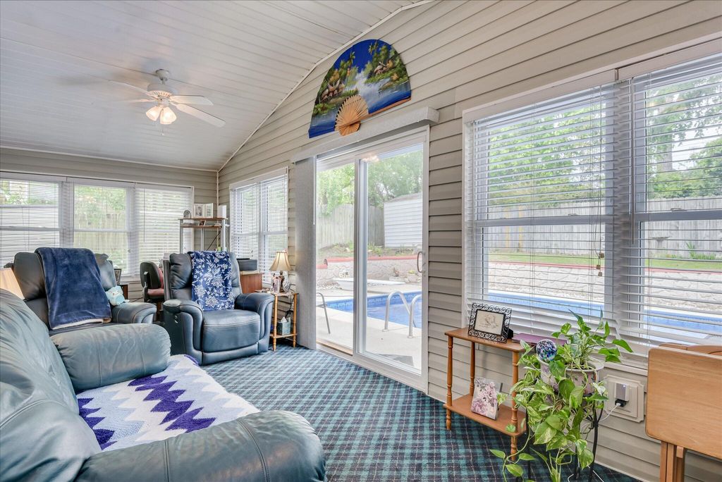 Haven't you always wanted your own pool? This lovely home welcomes you with its rocking chair front porch. Inside you will find spacious living areas with hardwood flooring; primary bedroom on the main floor; plus an approximately 300 square foot sun room on the rear of the home. The sun room overlooks the beautiful in-ground pool. Upstairs are two additional bedrooms and a full bathroom. The privacy fenced backyard is your very own oasis! Vacation at home! Within walking distance of Blue Ridge Elementary!