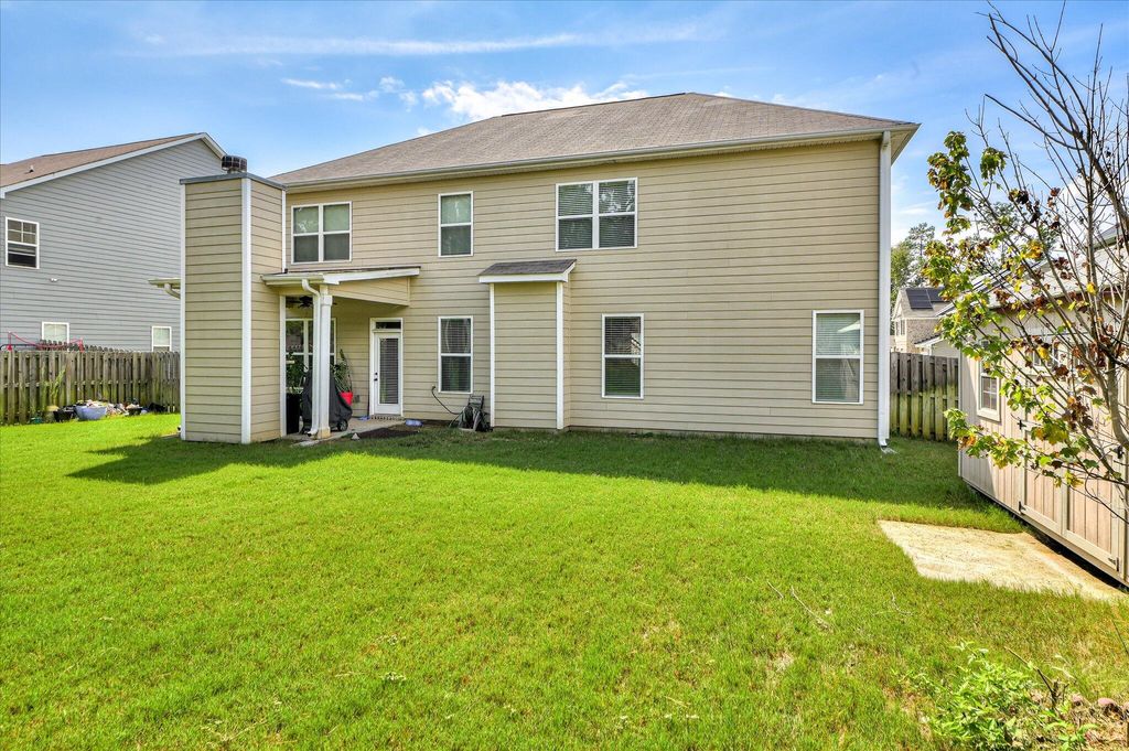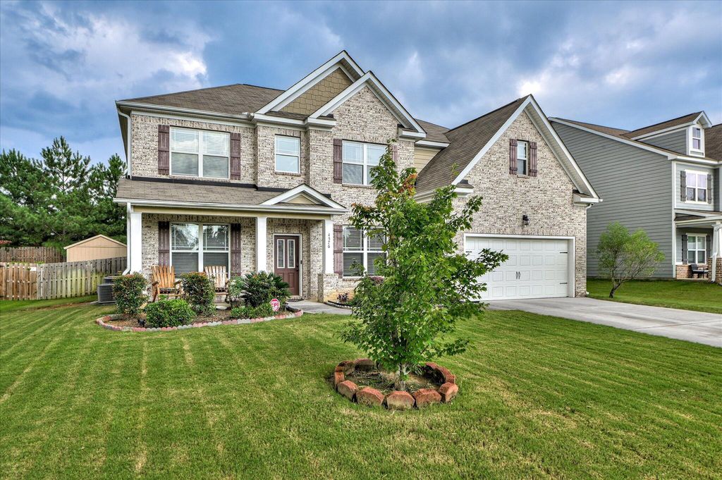 8,000 dollars Buyer's Incentive! Apply toward closing costs or an interest rate buy-down. This stunning brick-front home welcomes you with a charming covered rocking chair porch and an inviting entryway. Inside, a private study with French doors and a formal dining room set the stage for elegant living. The main level also offers a guest bedroom with a full bath, perfect for visitors. The chef's kitchen is the heart of the home, featuring a huge island with granite countertops, abundant cabinetry, a tile backsplash, double ovens, pantry space, and recessed lighting. Beautiful hardwoods flow throughout the foyer, kitchen and breakfast area, dining room, and hall, while tile floors enhance the owner's bath and main-level full bath. Upstairs, you'll find four spacious bedrooms and 3 full baths along with an open loft ideal for entertaining. The luxurious owner's suite boasts a sitting area, two large walk-in closets, and a glamorous bath with a tiled shower and garden soaking tub. Outdoors, enjoy the covered patio with a wood-burning fireplace, perfect for cozy evenings. The neighborhood features a community pool, sidewalks and a playground. Near shopping, dining, and Fort Gordon.