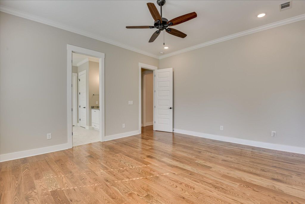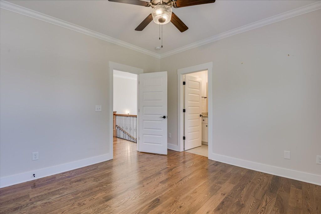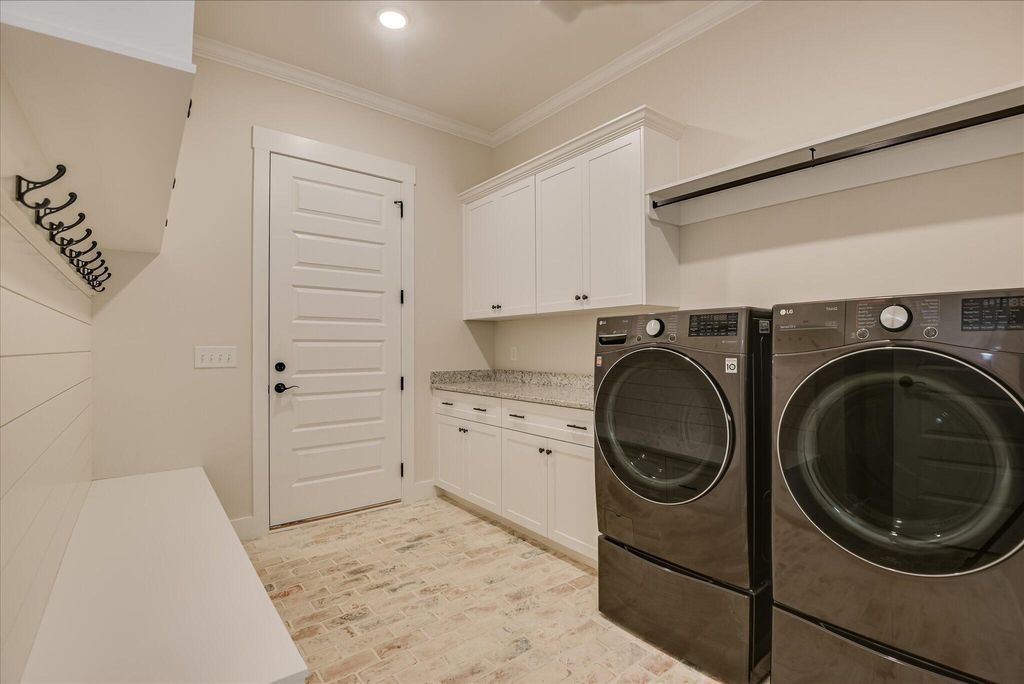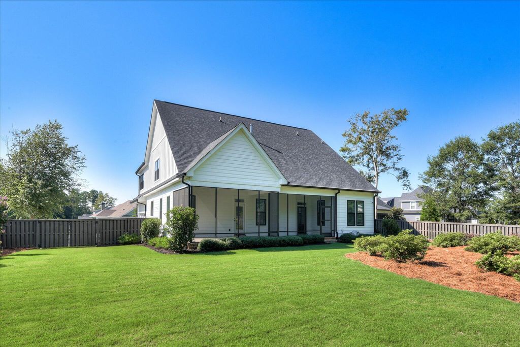 This modern farmhouse in Cooper Place was built in 2021 and looks brand new! Enter the front door to a bright two story foyer with open stairs leading to the second floor. To the left is a secondary bedroom or office with full bath. Through the wide front hall you'll find an open concept kitchen with breakfast room and great room with brick fireplace with gas logs. The kitchen has a large leathered granite center island suitable for seating four guests, plentiful cabinet spaces reaching to the ceiling, a gas cooktop and Bosch stainless steel appliances, and a tremendous walk-in pantry with custom shelving. Primary bedroom also on the main floor with a gorgeous bathroom featuring a glass shower and separate soaking tub, dual granite vanity, and custom walk-in closet. Bedroom also has access to a screened porch with stamped concrete floor. The laundry room has a whitewashed brick floor, matching LG front loading pedestal washer and dryer, granite counter for folding, ample cabinet storage, and a large mudroom bench with coat hooks. Upstairs in this farmhouse you'll find a bedroom with private bath, and another two bedrooms that share a hall bath. The flex room is very large (17x27) and could be used as a fifth bedroom or large recreation area or office space. The outdoor space on this home is serene and beautifully landscaped, and includes privacy fencing in the rear yard. Owners beautifully maintained this home and their upgrades include all oak hardwood floors inside, a large screened porch with stamped concrete flooring, and a premium epoxy finish on garage floor. Cooper Place neighborhood is convenient to Exit 5, close to I-20 and downtown.