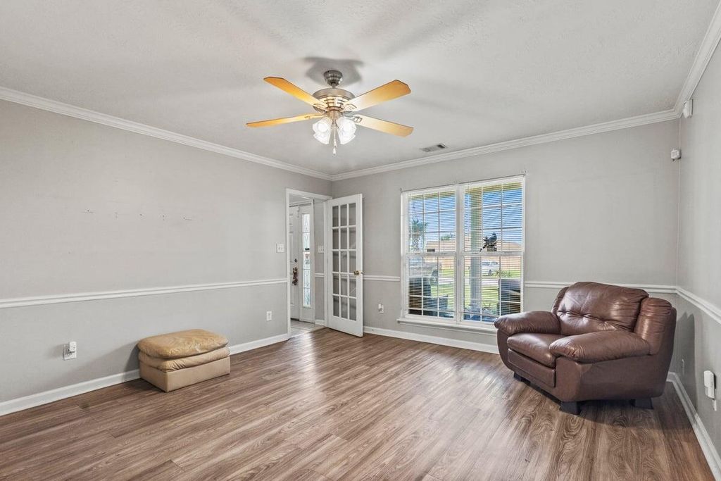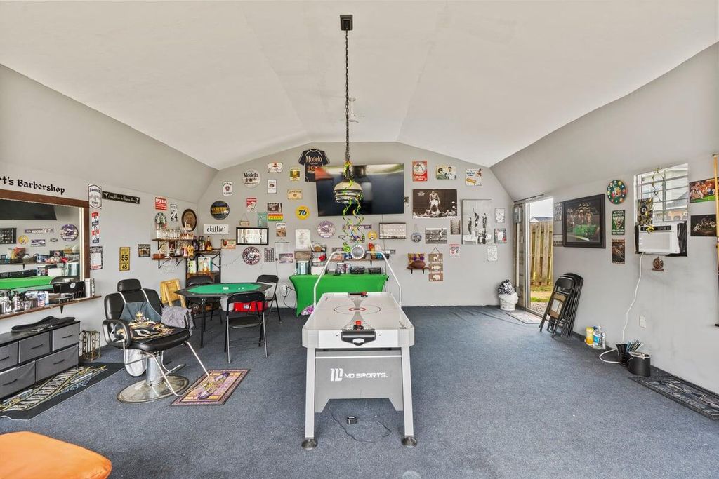 HUGE MAN CAVE WITH ALL THE TV'S AND attached DECK!! SUNROOM and COVERED PATIO!!!!Step up to this charming home and immediately feel at ease. Walk in and you're greeted by a beautifully maintained dining room"”perfect for family gatherings. To your right, a convenient half bath is ready for guests. Flowing seamlessly from the dining room, you'll find a spacious living room, filled with natural light. Step into the kitchen, where gorgeous white cabinets, an extra-large pantry, and plenty of storage make meal prep a breeze. Beyond the kitchen, enjoy two distinct spaces for relaxation: a cozy sunroom and an enclosed back porch. Head upstairs to all the bedrooms, carpeted for comfort, and discover the oversized primary suite. This retreat has ample space for lounging, and the attached primary bath features a relaxing jet tub for soaking after a long day. The man cave, measuring 21x25, is a dream for entertaining. It comes equipped with electricity, mounted TVs for game day, a refreshment bar, a door plus double pull-up doors, and an attached patio perfect for grilling. Step outside to a huge backyard, brimming with lights, a benched pergola, and a kids' swing set"”ideal for family fun and evening gatherings. The attached deck, 12x17, adds even more space to enjoy the outdoors. You can truly create your own individual space and style. Other highlights include a new handicap-accessible full bathroom, plenty of attic storage, a 2-car garage, a roof replaced in 2017, a new hot water heater, and an HVAC that's been serviced every six months. No HOA and conveniently located near the base, this home truly has it all! Come walk through it yourself"”you'll fall in love at every turn!