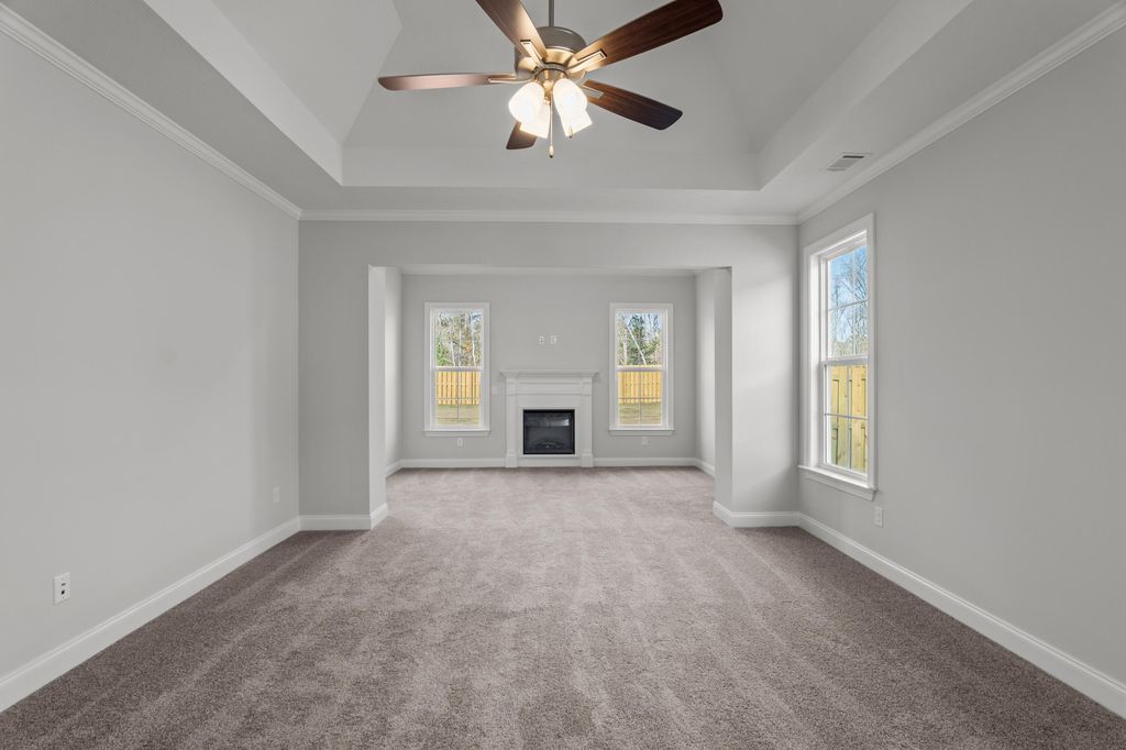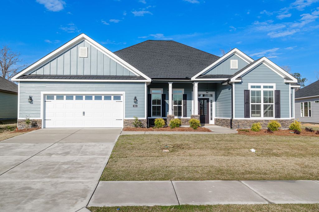 This beautifully newly planned Castlegate 22 floorplan by award winning Bill Beazley Homes located in the Hayne's Station community. This home boasts 4 bedrooms, 3 full baths and open concept living all on one level. 9' Ceilings. The main living areas have Evacore Click LVP flooring. The kitchen features beautiful granite countertops and island, full tile backsplash, GE Stainless Steel Appliance Package: (ENERGY STAR dishwasher, slide-in gas range, built-in microwave and wall oven, professional style hood vent, vented outside), white ceramic farmhouse sink, garbage disposal, ice-maker line and power pantry. Power Pantry is plumbed so an additional refrigerator with ice maker could be added in addition ample pantry storage space. The great room features a trey ceiling, ceiling fan and a real wood burning fireplace. The dining room area feature judges panels. The bathrooms feature quartz countertops, ceramic tile flooring, elongated toilets and framed mirrors. Owner's bedroom suite features a trey ceiling, ceiling fan and a sitting room with fireplace, large walk-in closet, double vanities with framed mirrors and quartz countertops, tile floor, separate tiled shower with semi-frameless shower door, garden tub and toilet closet with elongated toilet. Guest bedrooms are privately located with adjoining bathroom. There is another guest bedroom that is perfect for home office or host visitors. Hayne's Station is minutes from Ft. Gordon and has two community pools. Home to be completed end of November. The builder is offering a 7,000 incentive that can be used towards closing costs, upgrades, or to buy down the interest rate until. Builder is also offering a permanent interest rate buydown on VA and FHA loans with preferred lender, as low as 4.99% for qualified buyers through December 31, 2025. Experience a 360-degree tour of a previously built home with this floor plan. 625-HS-7009-01