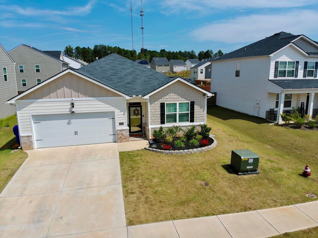 Welcome to 3330 Carmine Avenue, a beautifully upgraded 2023-built Cali floor plan in the sought-after Highland Hills community! This 4-bedroom, 2-bath home with 1,774 sq ft blends comfort and style with an open-concept design. The living room features a cozy gas fireplace, while the kitchen shines with granite countertops, custom tile backsplash, stainless steel appliances, oversized island, and walk-in pantry. The private owner's suite offers a spa-like retreat with dual granite vanities, soaking tub, separate shower, and a large walk-in closet! Step outside to a landscaped backyard oasis with a shed, hammock lounge, and pergola, perfect for entertaining or relaxing. Smart home features Echo show 15 ,video doorbell, smart lock, Wi-Fi thermostat that offer convenient control from anywhere ! Enjoy community amenities like a pool, playground, and basketball court, all less than a mile from top-rated schools and I-20. 📅 Showings require 24 hours' notice.