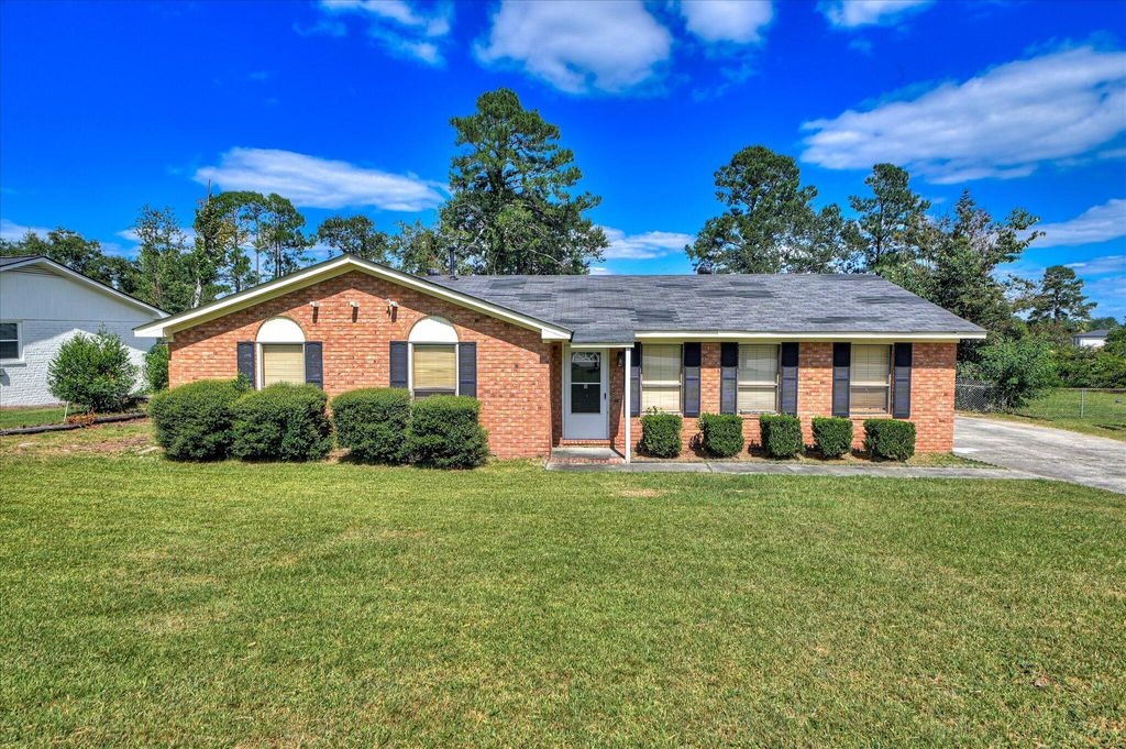 Lovely brick ranch on quiet street in Martinez. Close to shopping, Bobby Jones Exp and Fort Gordon. Wood like flooring in main living areas and carpet in bathrooms. Formal living room, dining room and great room with brick fireplace. Kitchen with stainless appliances including brand new dishwasher Large back yard.