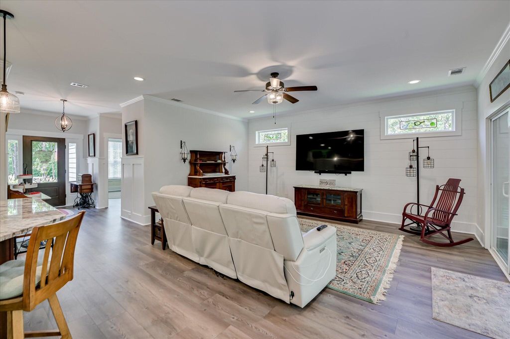 Welcome to this charming 3-bedroom, 2-bath home in the sought-after Shenandoah @ Savannah Lakes subdivision, nestled on a spacious .75-acre lot and featuring many upgrades throughout. Step inside to a bright and inviting great room highlighted by a stylish shiplap accent wall. The kitchen boasts granite countertops, two pantries, and updated finishes, making it a perfect space for cooking and entertaining. This home offers new LVP flooring throughout. The owner's suite includes a 2-foot build-out, dual closets, and a spa-like bathroom with a tiled walk-in shower. Enjoy the outdoors year-round in the screened-in patio featuring 18x18 tile flooring, vaulted ceiling, and a misting system that overlooks the beautifully landscaped backyard. Additional features include two sun-shield mounted TVs that remain with the home, a whole-house water filtration system, an invisible fence system for pets, an extended concrete driveway with extra parking, and a garage with built-in shelving for storage. This beautifully upgraded property blends comfort, convenience, and outdoor living in one of the area's most desirable communities.