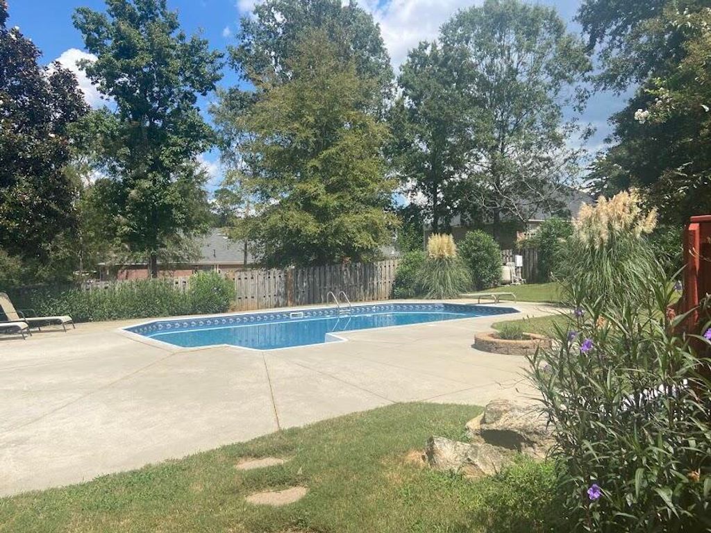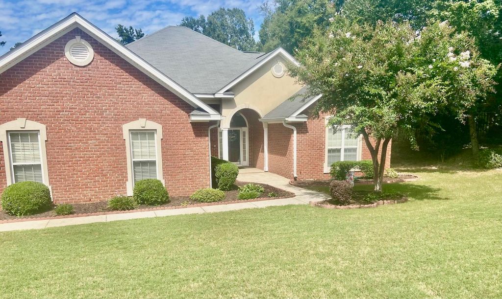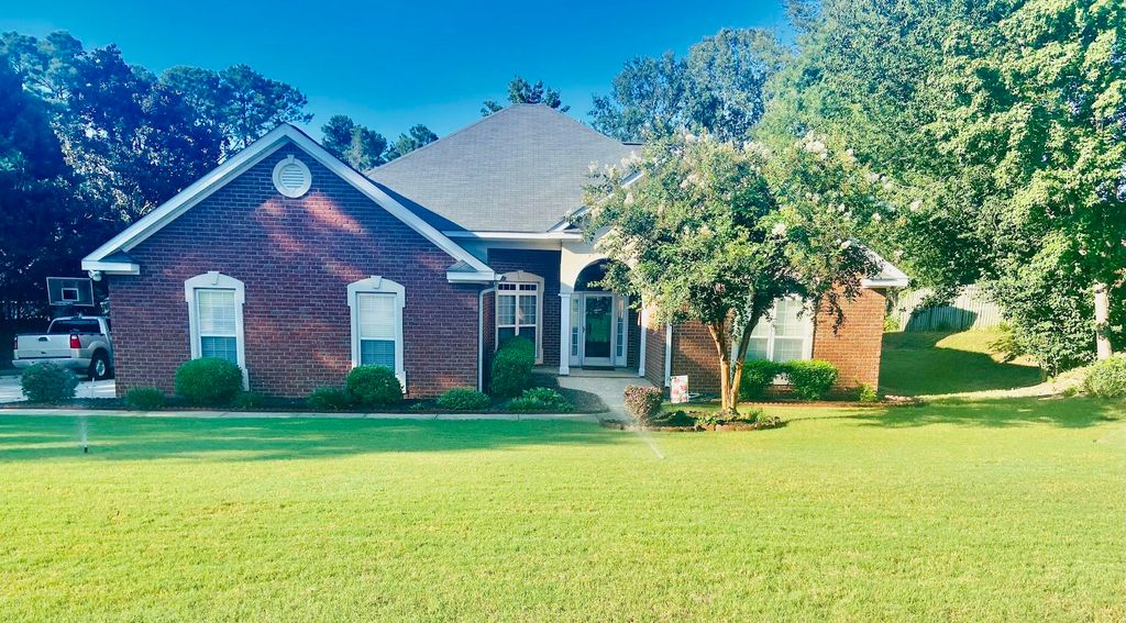 Located in the heart of Evans, Georgia within the Stratford Subdivision is a beautiful well-manicured open floor plan home that features 5 bedrooms with 2 1/2 baths and an inground pool that showcases a new vinyl liner. This brick veneer home includes a spacious side entry two car garage, and upstairs bedroom hideaway, along with a great room and dining room with 14 ft vaulted ceilings. Cooking and entertaining guests will be easy as there is a large island in the kitchen with plenty of cabinets and countertop space and an adjacent breakfast nook with a vaulted trey ceiling and ceiling fan. The home has been recently painted and updated with new LVP flooring throughout the house along with new carpet in the bedrooms. Other notable features include a tile gas fireplace in the great room and a tile bathroom shower and floor in the owner's suite with a jetted whirlpool tub. The beautifully, landscaped backyard with a pool is a fun spot to host your parties. It is located in the Greenbrier High School District.