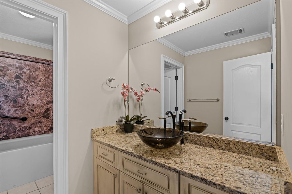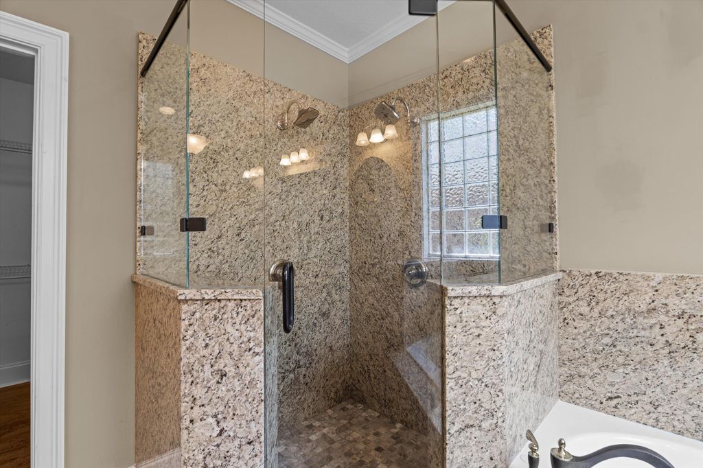 Come check out this Fabulous, well kept, All brick 5 bedrooms 4 full bathroom home! This amazing home is well equipped with 2 Primary bedrooms! One upstairs and one downstairs! A rocking chair front porch. Beautiful hardwood floors throughout all the living space, Kitchen, and Bedrooms. NO CARPET! Large high ceiling living room with a beautiful brick Fireplace. Kitchen has a pantry, beautiful granite counter top with a Island for plenty of space. A amazing wet bar on the way to a Spacious formal dining room. Large primary bedroom downstairs with access to the amazing sunroom on the back of the home with a Jacuzzi! Large primary bathroom with plenty of closet space Lots of Granite, a walk in shower, a Jet tub, large double vanity with makeup area in the center. Walk in to the 2 car garage to a well placed mud room for shoes and jacket, down the hall is a large laundry room with plenty of cabinets and a utility sink, the second bedroom and bathroom. A large office space. Upstairs to the right has the second spacious primary suite with large bathroom with walk-in shower and garden tub. 2 more spacious bedrooms connected with a Jack and Jill bathroom. There is a large deck on the back of the home with stairs leading to the unfinished basement. Your will not want to miss this home. Schedule your showings today!