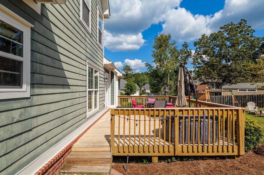 Beautiful Family Home on Corner Lot This beautiful home has everything a family needs"”and more! From the moment you walk in, you're greeted by high ceilings and an open, airy feel in the living room, which flows right into the kitchen, making it perfect for everyday living and entertaining. On the main floor, the primary suite is bright with natural light and features a vaulted ceiling. The primary bathroom with it's walk-in shower and jetted-tub, provide a peaceful retreat. A second full bathroom and a versatile flex room"”ideal as a home office, guest room, or additional bedroom"”offer added convenience and flexibility. Upstairs, you'll find three bedrooms and a full bathroom, providing plenty of space for family and guests. Outside, enjoy a private backyard oasis with a large deck, perfect for relaxing or hosting gatherings. Located on a large corner lot in the desirable neighborhood of Sumter Landing, you'll also have access to amazing community amenities like a resort-style pool, scenic bike paths, and peaceful river access"”great for outdoor adventures and making memories. Don't miss your chance to make this beautiful home your own!