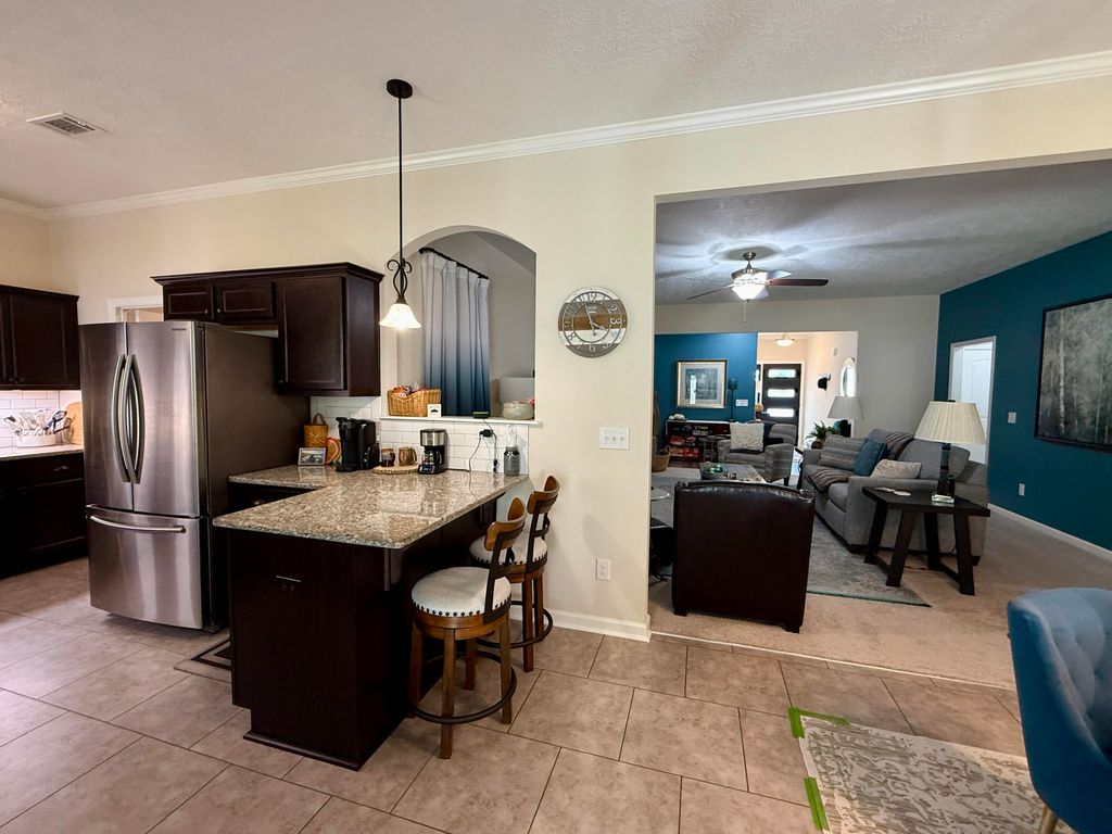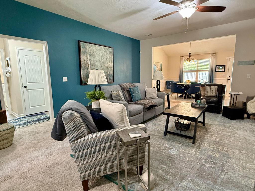 Open, Spacious, & Storage Galore! This 4 bedroom RANCH style, zero-entry (no steps) home has been lovingly cared for and well-maintained. Open-concept, this home has a HUGE living room, large kitchen (with granite countertops and lots of cabinet and counter space) and an incredible separate BUTLER'S PANTRY, with 12 feet of butcher block counter space as well as cabinets and shelves, and a water-line for an extra refrigerator, making it a chef's dream! The kitchen sink & appliances are stainless and the cabinets are plentiful with a modern style dark stain. The kitchen also includes a coveted garden window with a view to the fenced back yard. This beautiful home also has an elegant dining area, with double windows looking out to the large, covered back patio, perfectly centralized for entertaining family & friends. The SPLIT BEDROOM floor plan provides privacy for the spacious Primary bedroom and bath, with a double sink vanity, built-in dressing table/vanity with large window above, shower, and walk-in closet. A total of 4 linen closets in the house means LOTS of EXTRA STORAGE for the family. The left side of the house includes the master bedroom, separate laundry room, two of the linen closets, and an entry door from the 2-car garage. The right side of the home has 3 additional bedrooms, with double closets, two more linen closets, and a large hall bathroom with another double sink vanity, tub/shower combo, and additional cupboard as well. The front and the back yard are beautifully landscaped with sprinklers front and rear. The home is tucked away ½ mile off Wrightsboro Road, with easy access to Fort Gordon, shopping, and restaurants. This small community features a pool and picnic area as well as sidewalks for walking and meeting the neighbors. Schedule your showing today as this home is an incredible value at this price point!