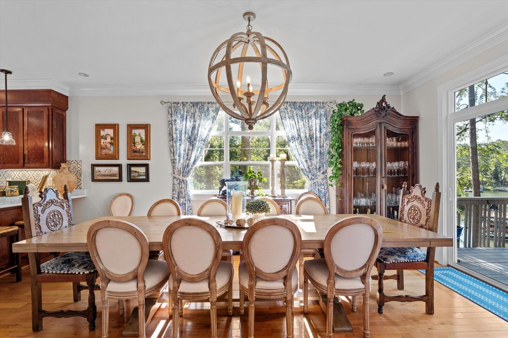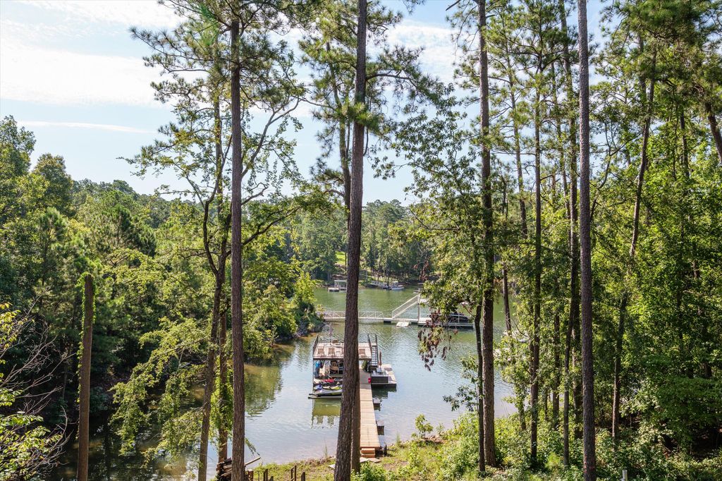 Step into lakefront living at its finest at 161 Jackson Drive, located in the highly sought after Modoc Shores. Nestled on a .64-acre lot on Clarks Hill Lake and just steps from the water, this stunning home offers the perfect blend of elegance, comfort and adventure. Located in a quiet protected cove, you'll enjoy a rare two-story covered dock, tons of parking for friends, family, and recreational toys, and a true gem of a home crafted with both timeless design and modern upgrades. From the moment you enter, the walk-through foyer invites you into light-filled living spaces with an open dining and great room with a cozy gas log fireplace, a den/family room perfect for relaxing or an office with built in Murphy Bed-- all with incredible lake views! The chef's kitchen was just remodeled in 2022 shines with beautiful custom cabinetry, stainless steel gas appliances, and every detail designed for both function and style. The owner's suite is a private sanctuary, complete with a spa-like bath featuring dual vanities, a soaking garden tub, frameless tiled shower (all updated in 2021) and French doors leading to your balcony with gorgeous lakeview-perfect for sipping coffee at sunrise or winding down at sunset. This home has been thoughtfully designed. Whether you are looking to make Modoc Shores your primary residence or a lake house retreat just minutes from Evans, 161 Jackson Drive is just what you've been looking for as there is plenty of space for guests. With 3 additional bedrooms are located upstairs, you'll be able to host lake weekends with family and friends. Bedrooms 2 and 3 share a Jack and Jill Bath. Additional Powder Room located upstairs as well. Charm and craftsmanship are found throughout, from the stone-covered rocking chair front porch and flagstone patio overlooking the lake to the gleaming hardwood floors, crown molding, and expansive decking made for entertaining. The oversized 27' deep two-car garage offers ideal boat storage, while recent updates including a new roof (2024) and dual HVAC systems (2022) ensure lasting peace of mind. Only 20 minutes from town, yet offering the privacy and tranquility of a world away, this extraordinary retreat is where luxury meets lake life. With the beauty of Clarks Hill Lake as your backdrop- this isn't just a home, this is your rare chance to step into the lake lifestyle