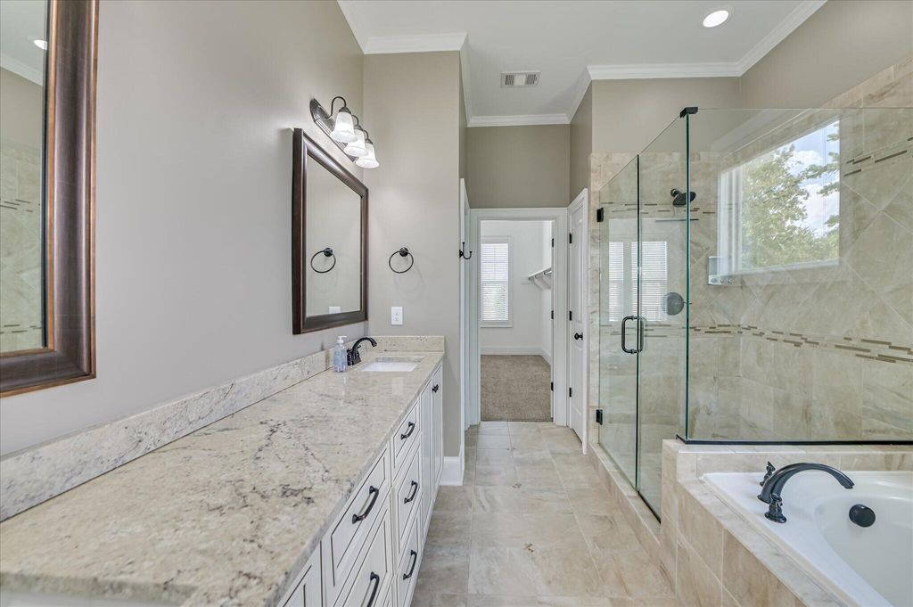 This stunning 2-story home offers the perfect blend of comfort, style, and functionality. Featuring 4 spacious bedrooms and 3.5 bathrooms, this thoughtfully designed floor plan includes the primary suite conveniently located on the main level for added privacy and ease. Upstairs, you'll find a versatile flex room, a separate loft area, and three additional bedrooms"”ideal for a growing family or hosting guests. Step inside to an open floor plan that flows seamlessly across the main level, accented by beautiful wood floors, coffered ceilings, and custom built-ins. The heart of the home is the gourmet kitchen, boasting an oversized island, granite countertops, stainless steel appliances, gas cooktop, hidden hood, and a cozy breakfast room. The living room offers warmth and charm with a gas fireplace and elegant touches throughout. Retreat to the luxurious primary suite, featuring a custom ceramic tile shower and large custom closet. Additional highlights include a laundry room with utility sink, tankless water heater, and a spacious 3-car garage providing ample storage and parking. Enjoy outdoor living year-round with a covered back patio and grilling pad. Located in Bartram Trail with some of the area's top golf courses and offering access to the community clubhouse and pool, this home delivers a lifestyle of comfort, convenience, and recreation. Don't miss your opportunity to own this exceptional property in one of the area's most desirable neighborhoods. Schedule your private showing today!
